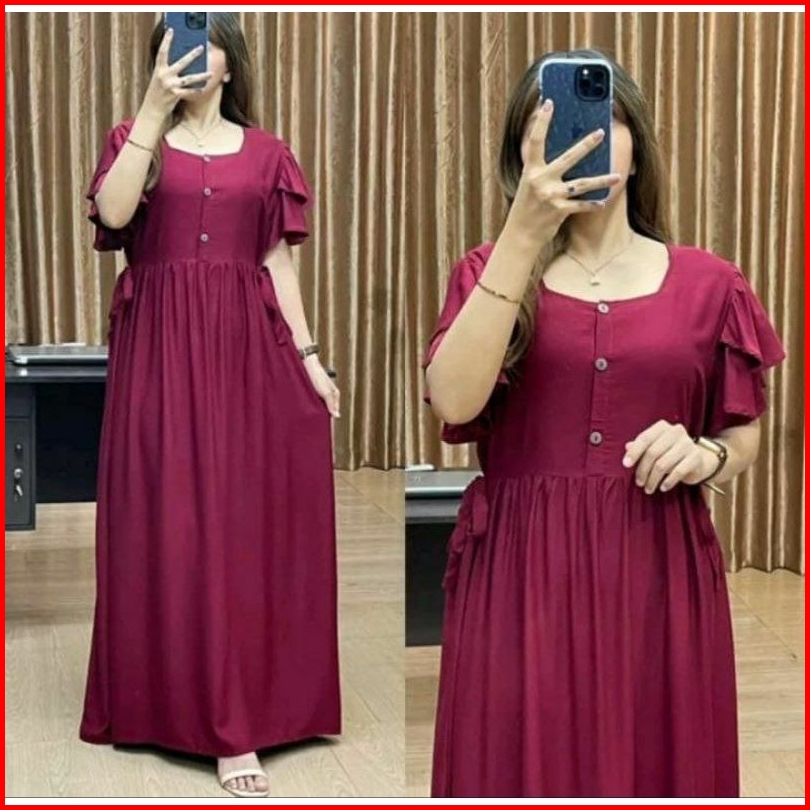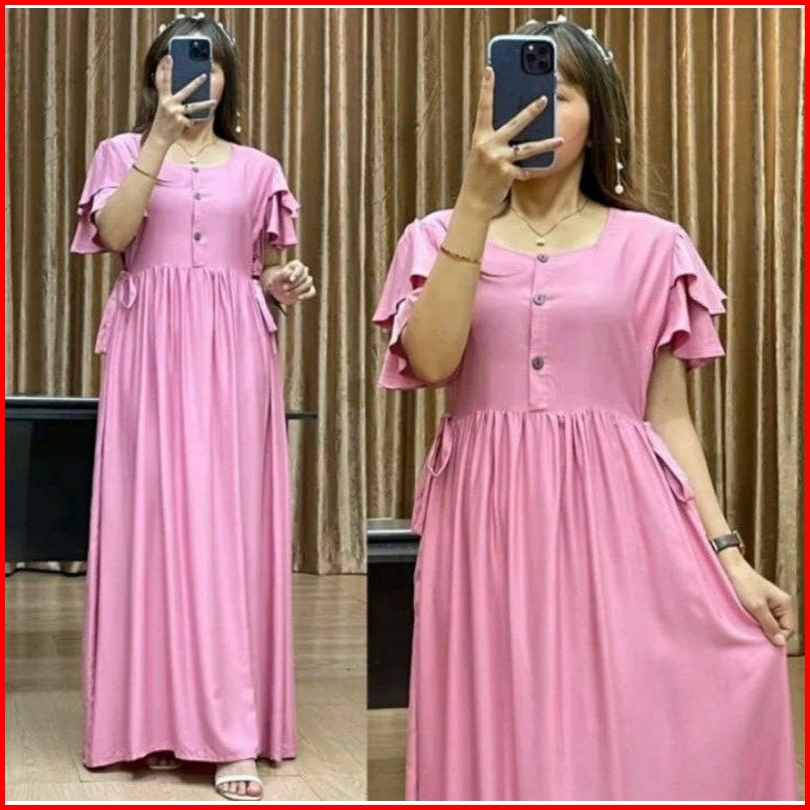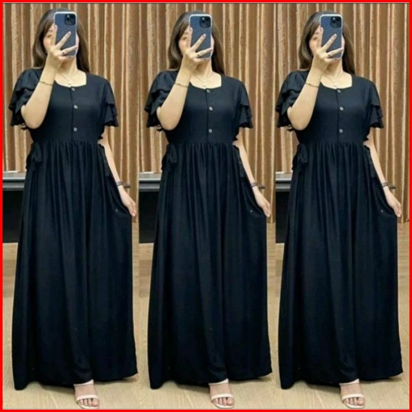 Dress Panjang Semata Kaki Dress Busui Kancing Jumbo