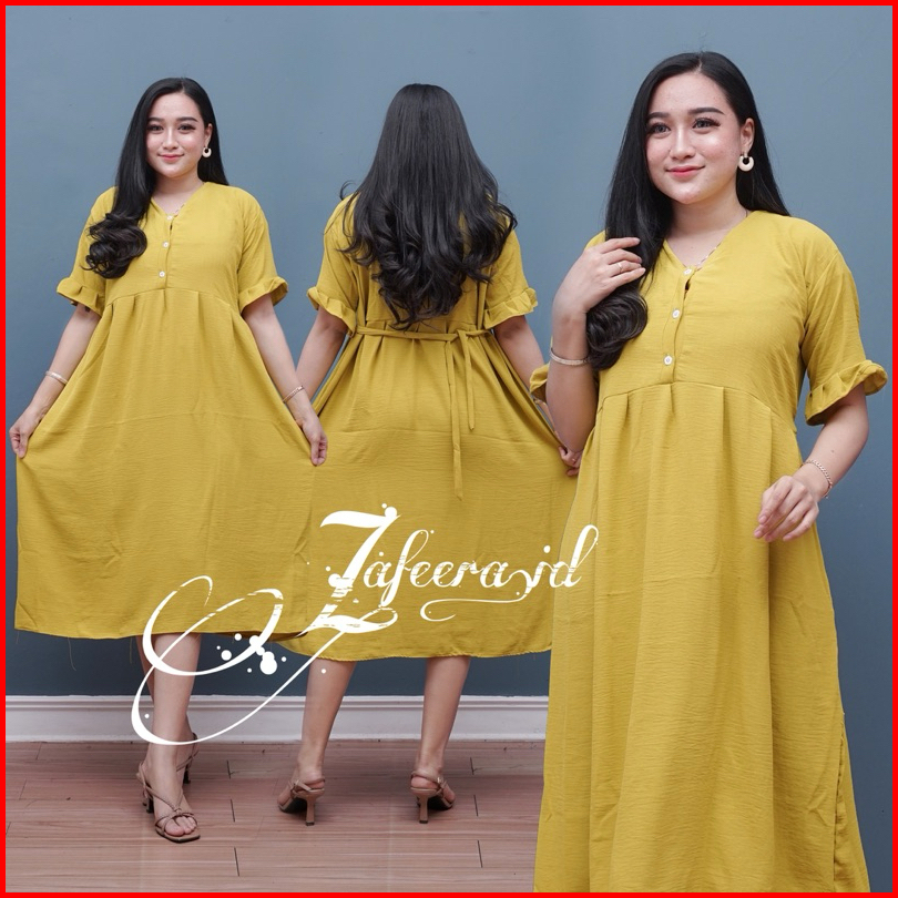 Hana Dress Ruffel Daster Cringkel Kekinian Jumbo Busui Home Dress Premium