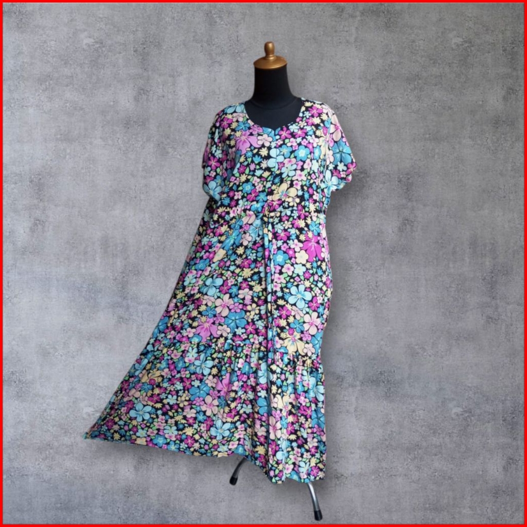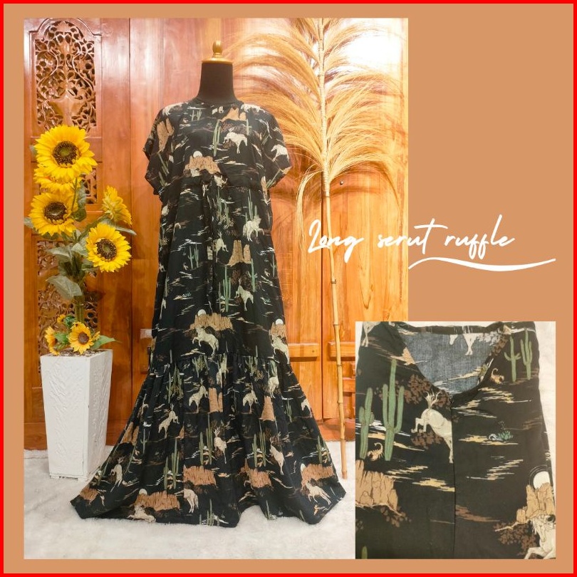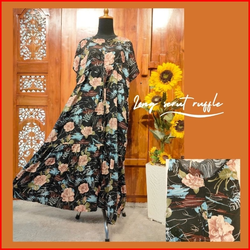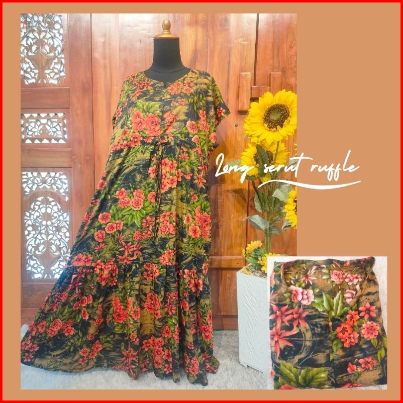 Daster Long Serut Ruffle Daster Rayon Terbaru Kekinian