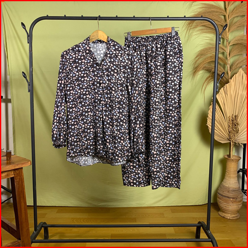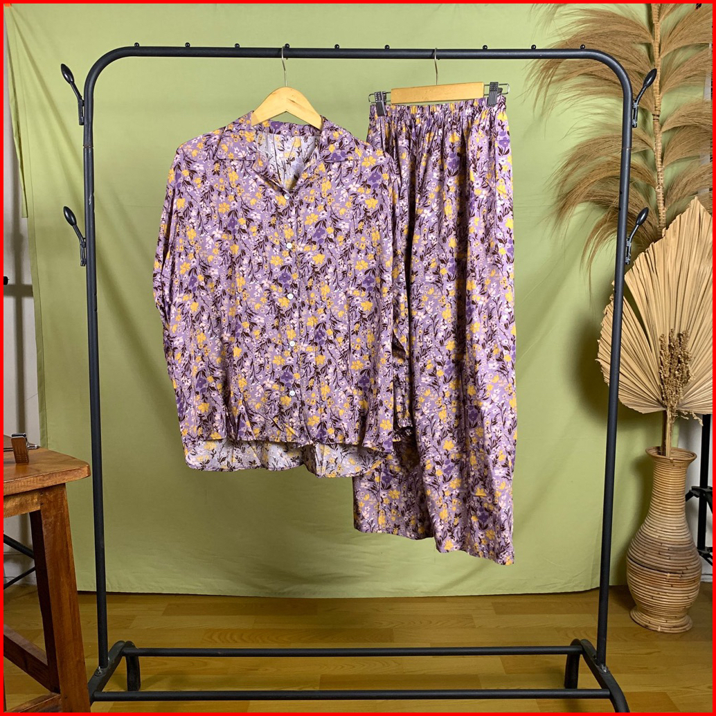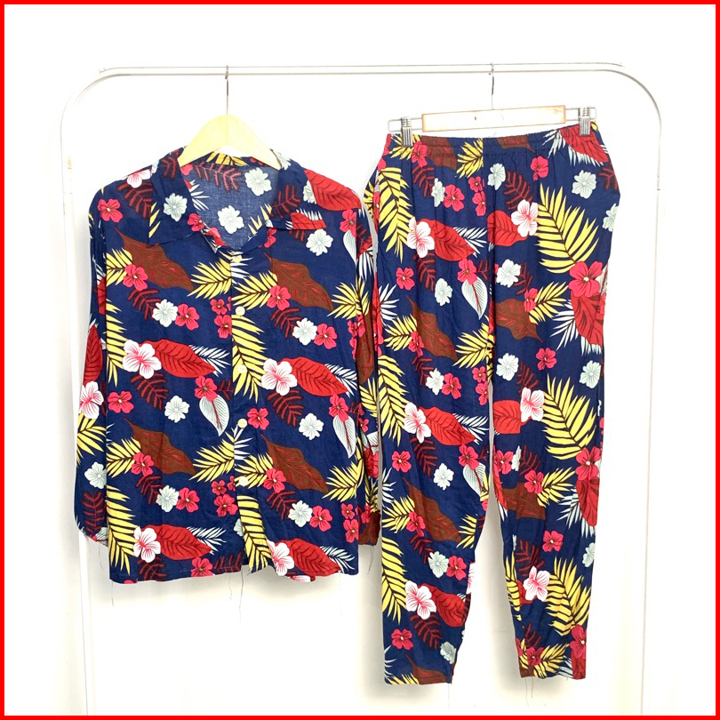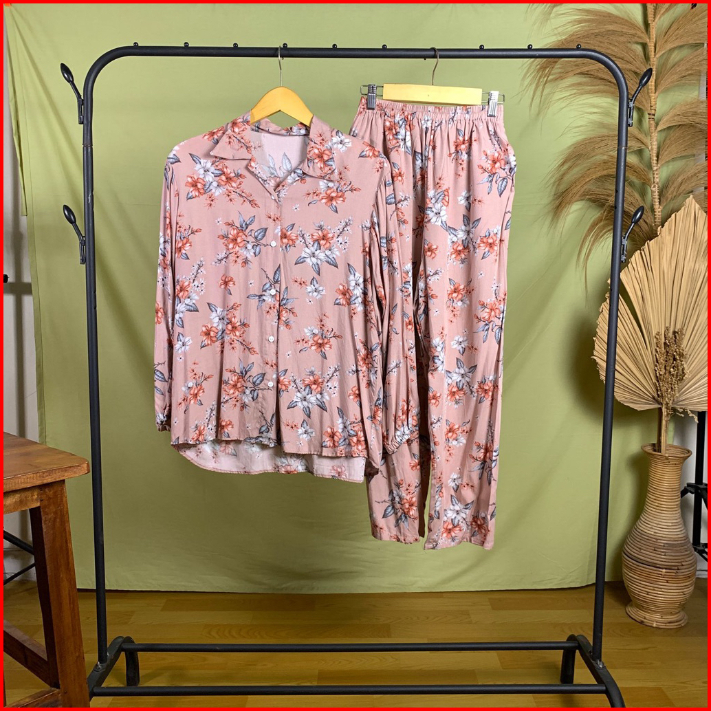 Wearfaya Set Piyama Rayon Kemeja Lengan Panjang Celana Panjang Bahan Kain Rayon Premium