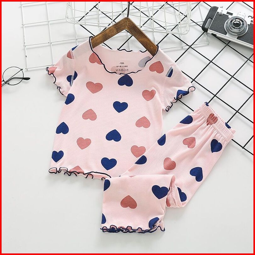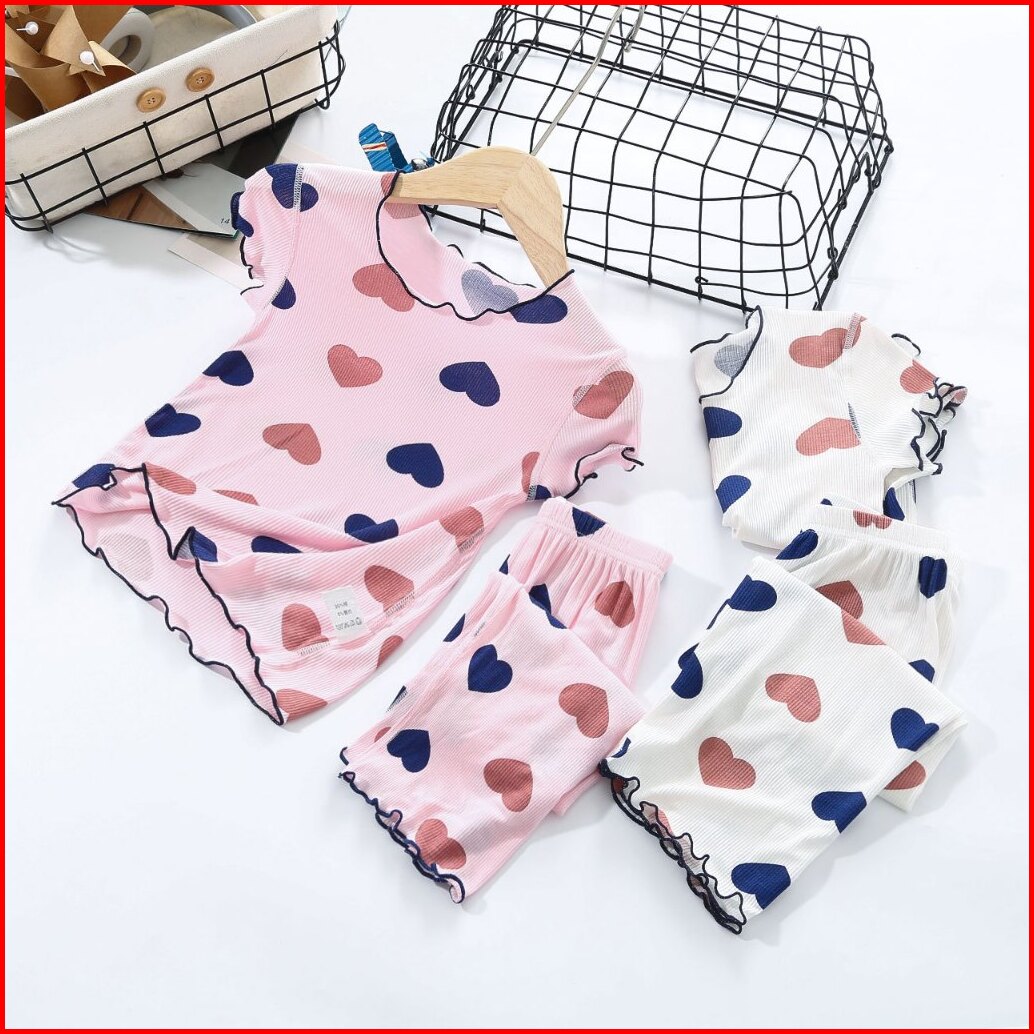 Bykiddos - Piyama Anak Setelan Baju Tidur Anak Perempuan Lengan Pendek Motif Love Terlaris