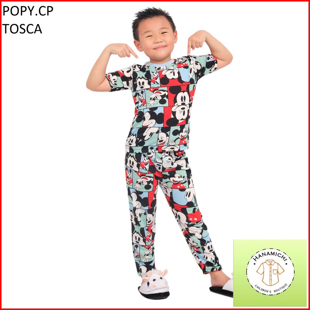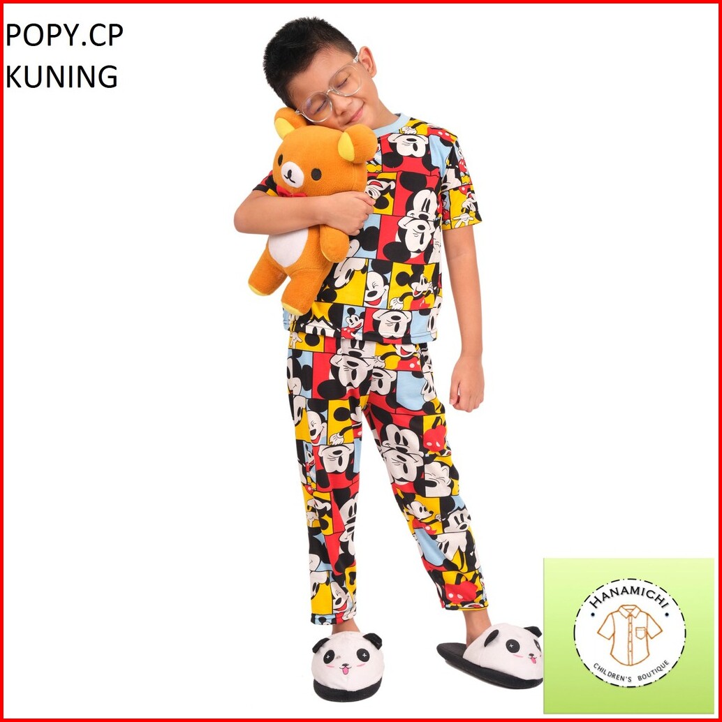 Hanamichi Popy.cp Setelan Baju Tidur Anak Lengan Pendek Motif Kartun