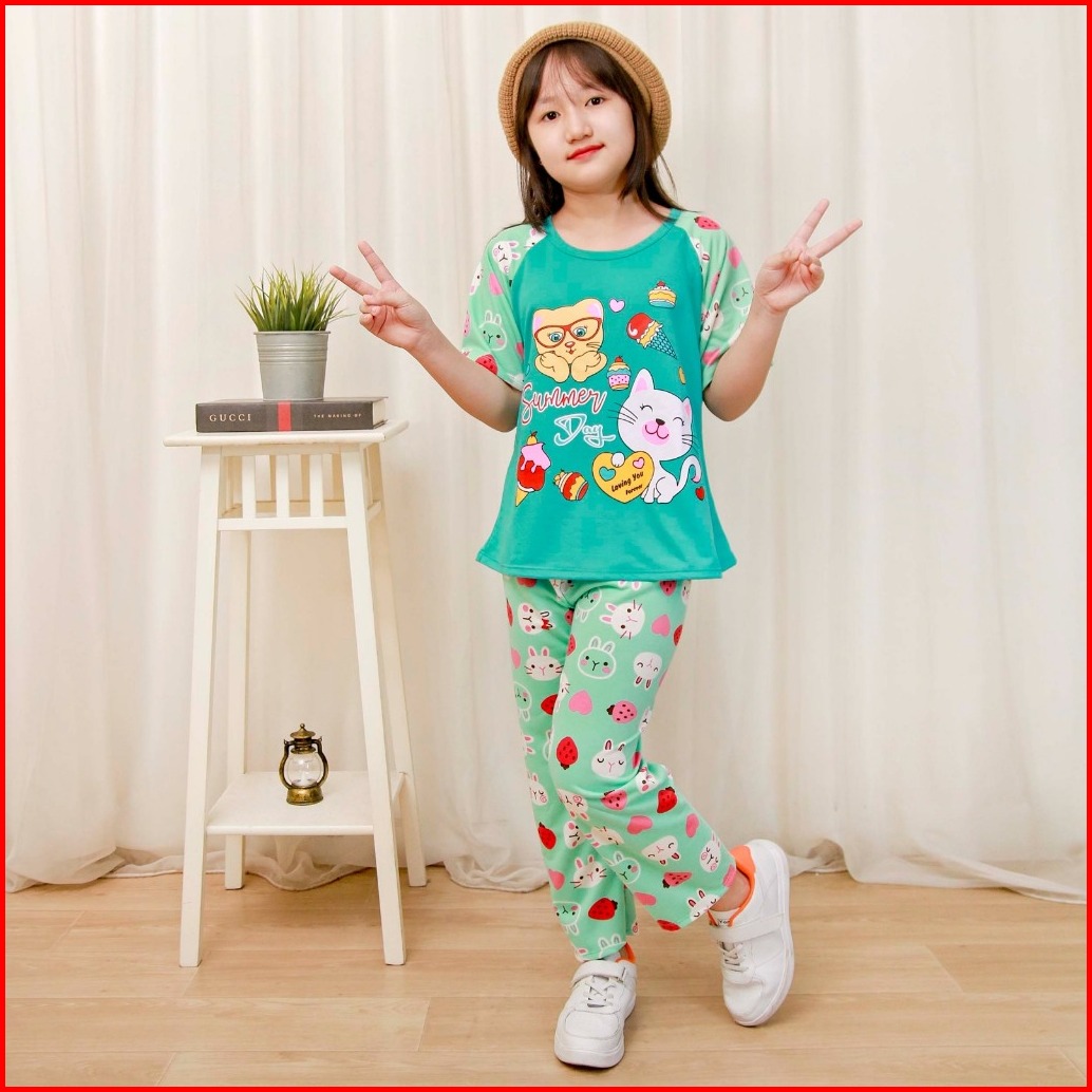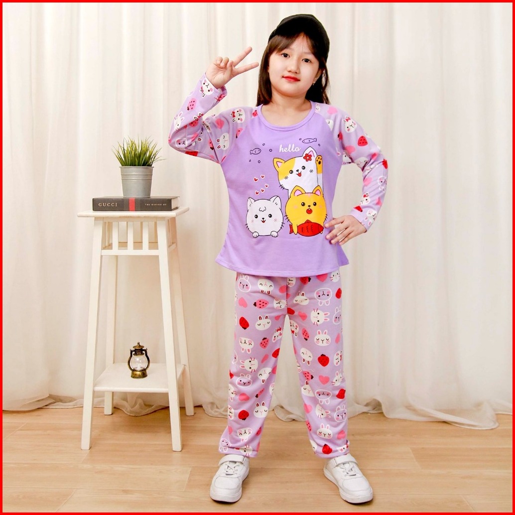Kiyosaki Kids - Stelan Premium Anak Perempuan Usia 1-8 Tahun Celana Panjang Baju Tidur Anak Piyama Anak