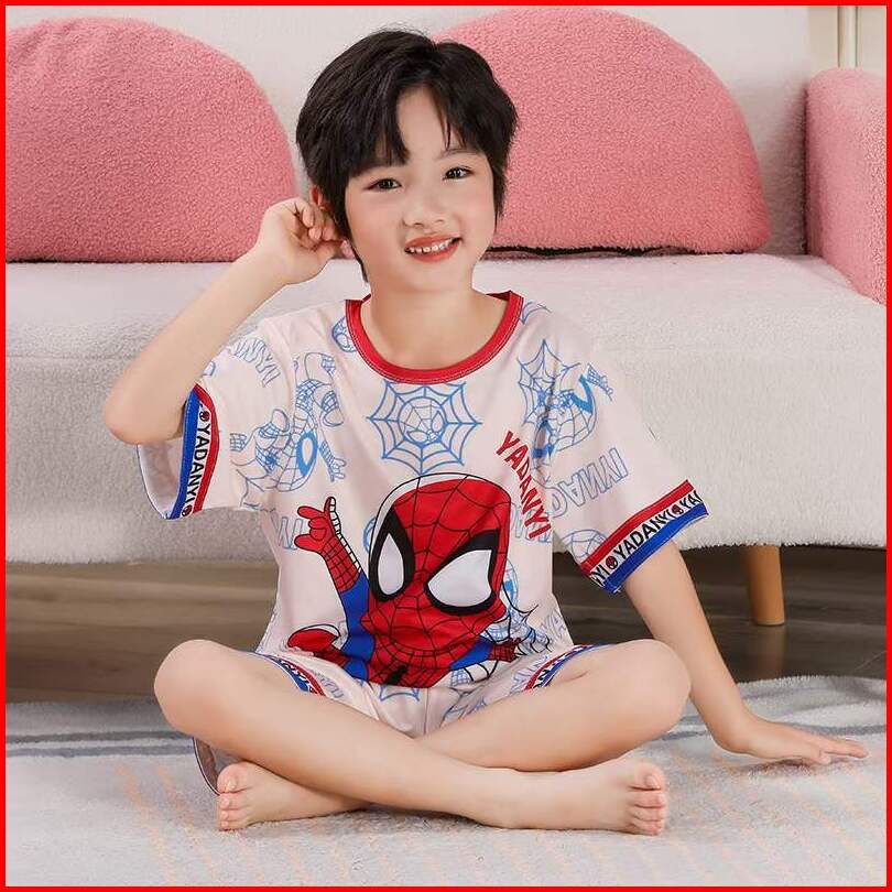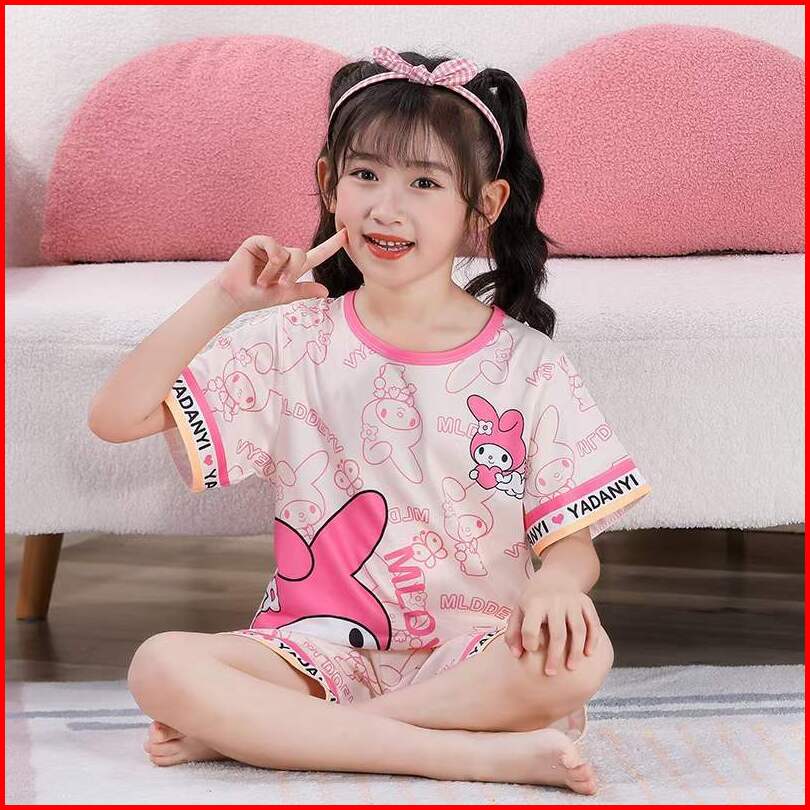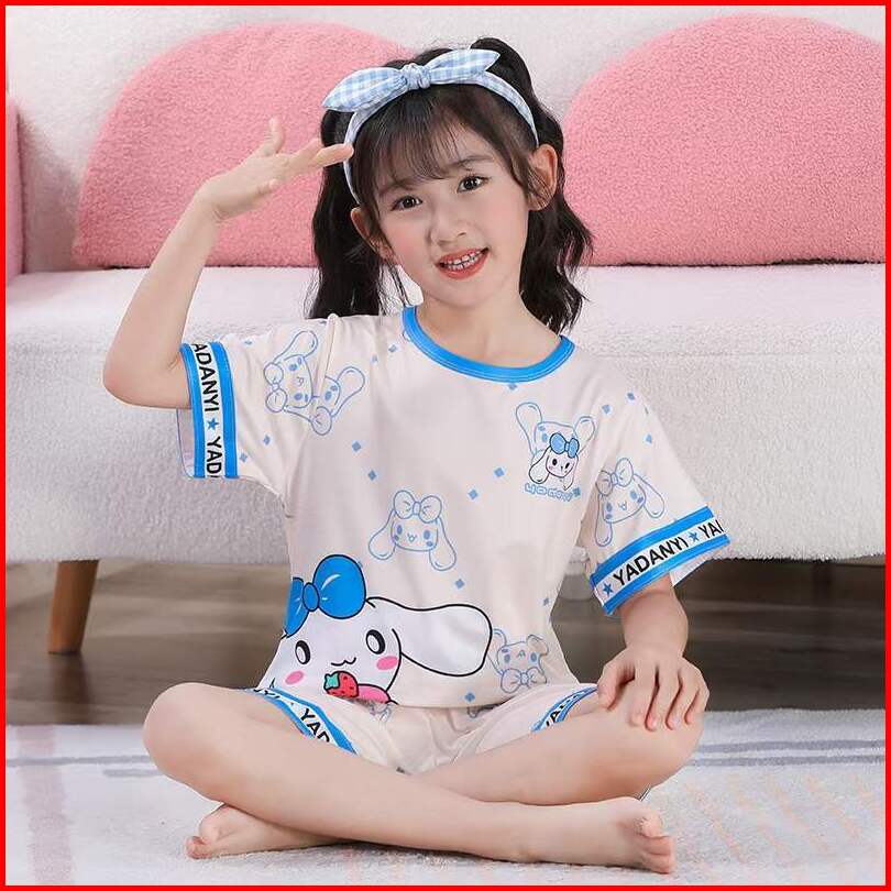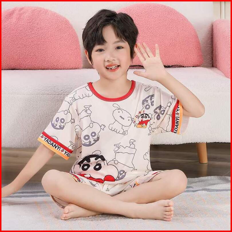 Setelan Baju Tidur Anak Kaos Harian Piyama Lengan Pendek Celana Pendek Usia 4-12 Tahun