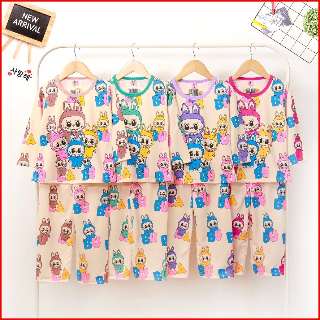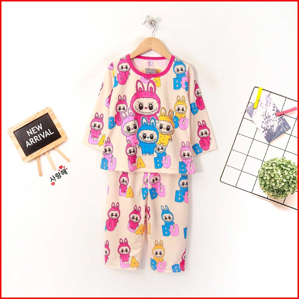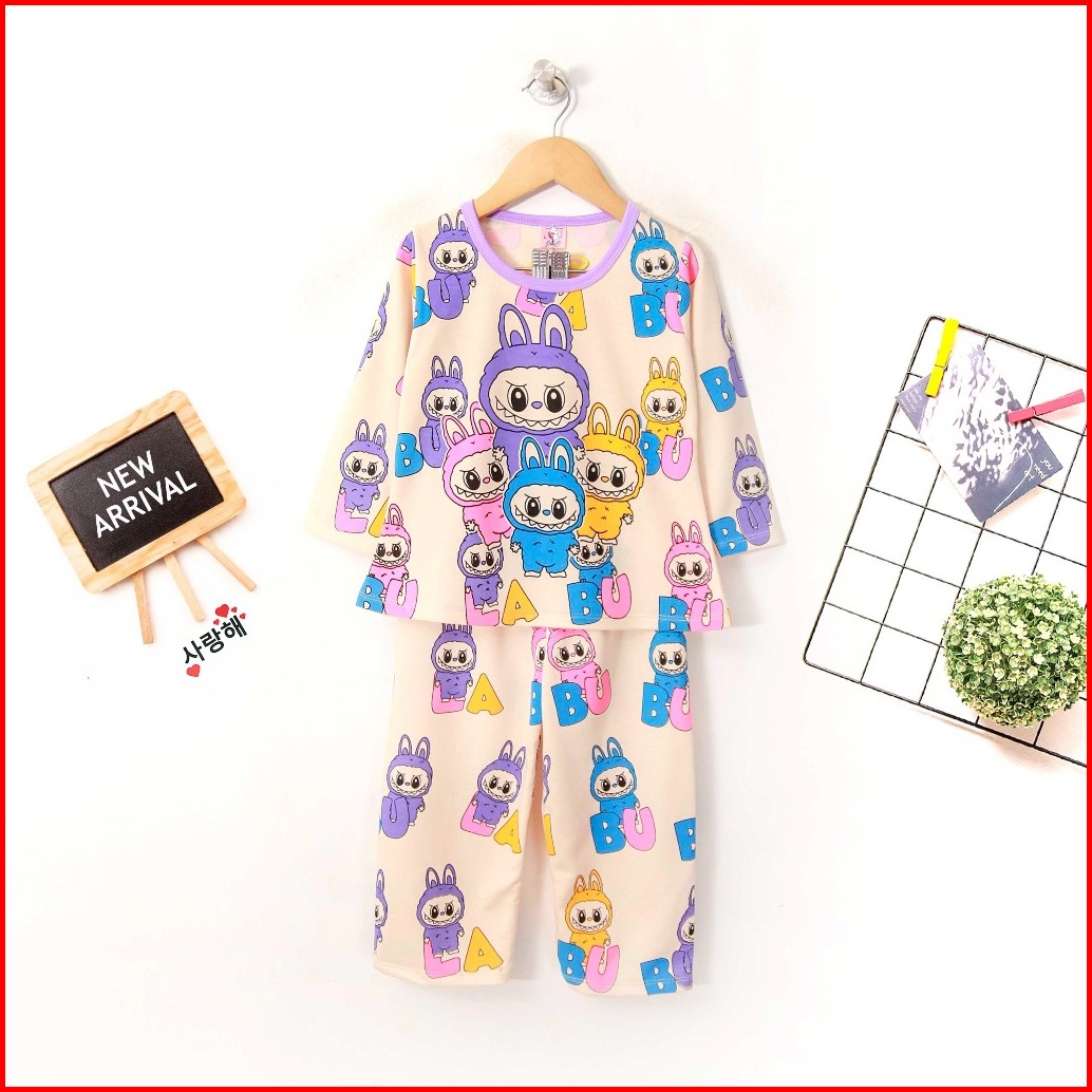 Kiyosaki Kids - Stelan Premium Anak Labubu Usia 1-8 Tahun Baju Tidur Labubu Stelan Labubu Anak Perempuan