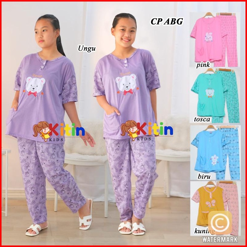 Sl - Cp Setelan Baju Tidur Dan Piyama Anak Cewek Perempuan Aplikasi Bordir Sablon Dan Kantong Murah Motif Random Bahan K