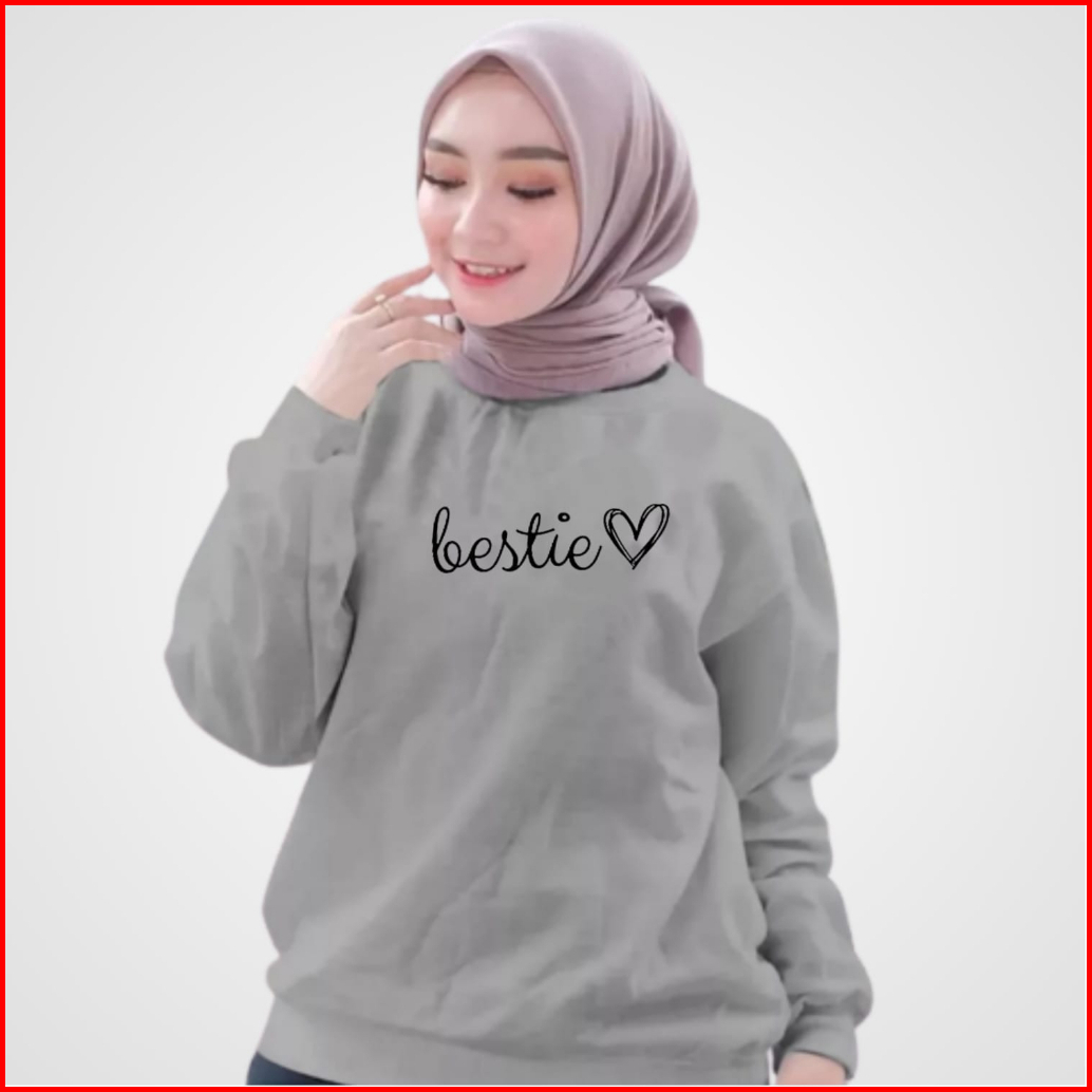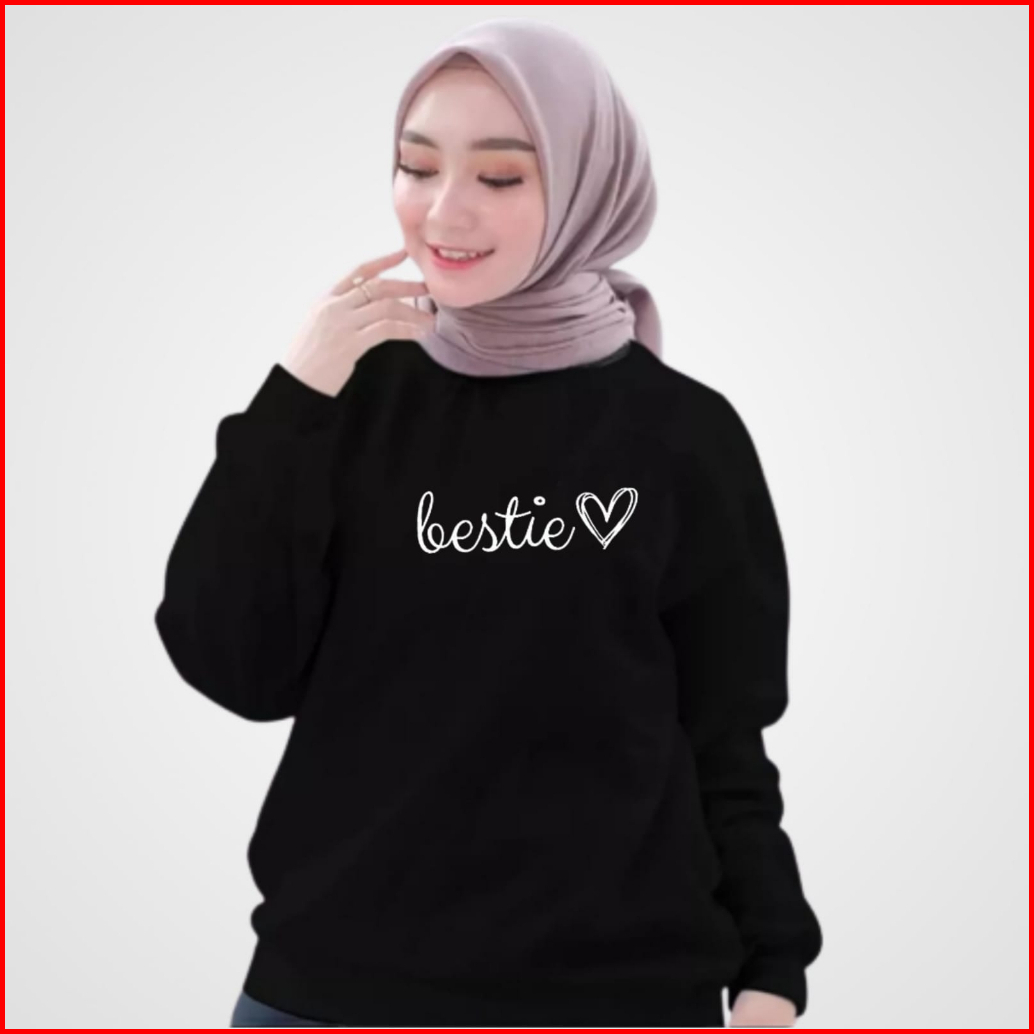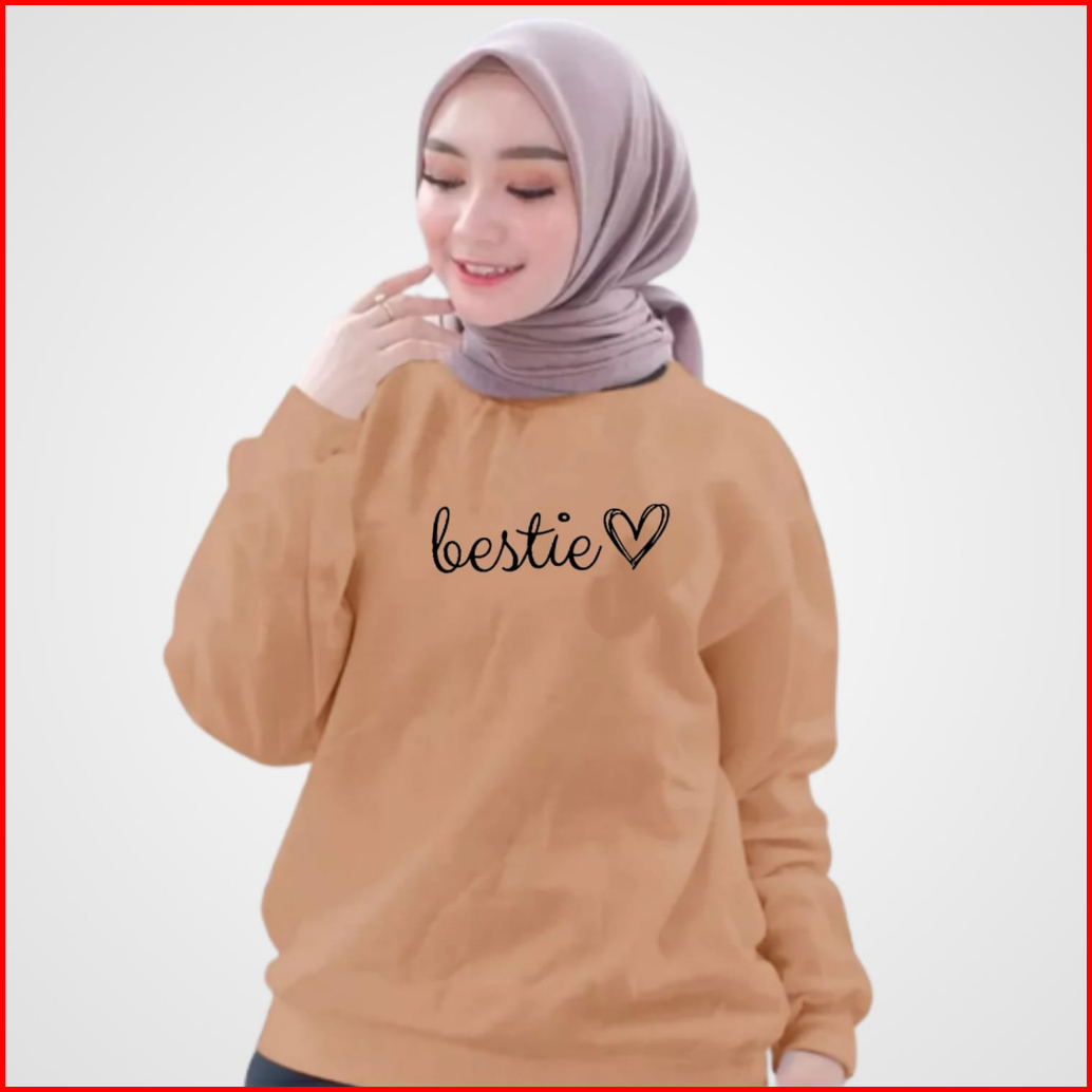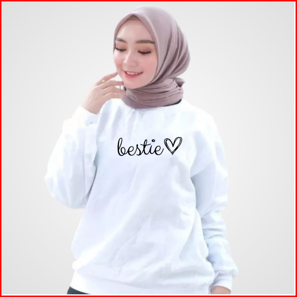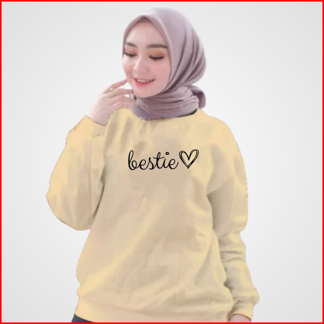 Kaos Wanita Lengan Panjang Tulisan Bestie Bahan Babyterry Premium