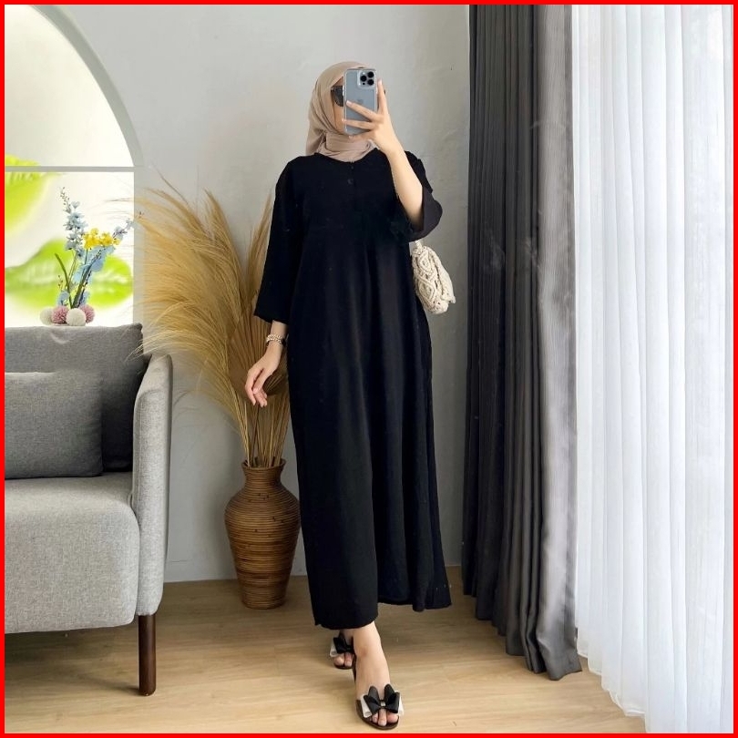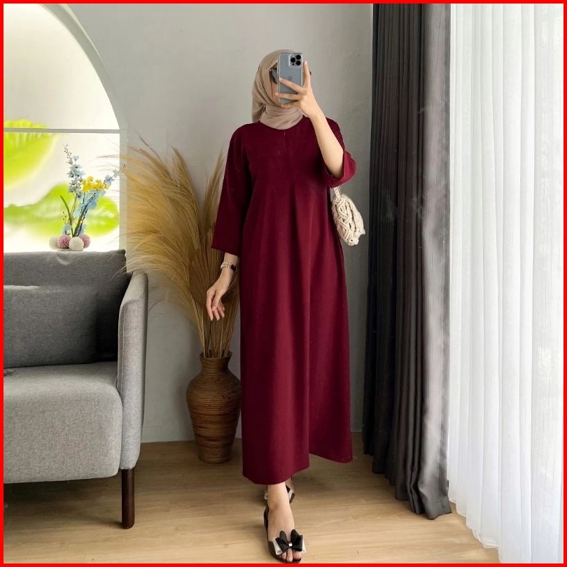 Daster Crincle Polos Wanita Model Tangan 3 4