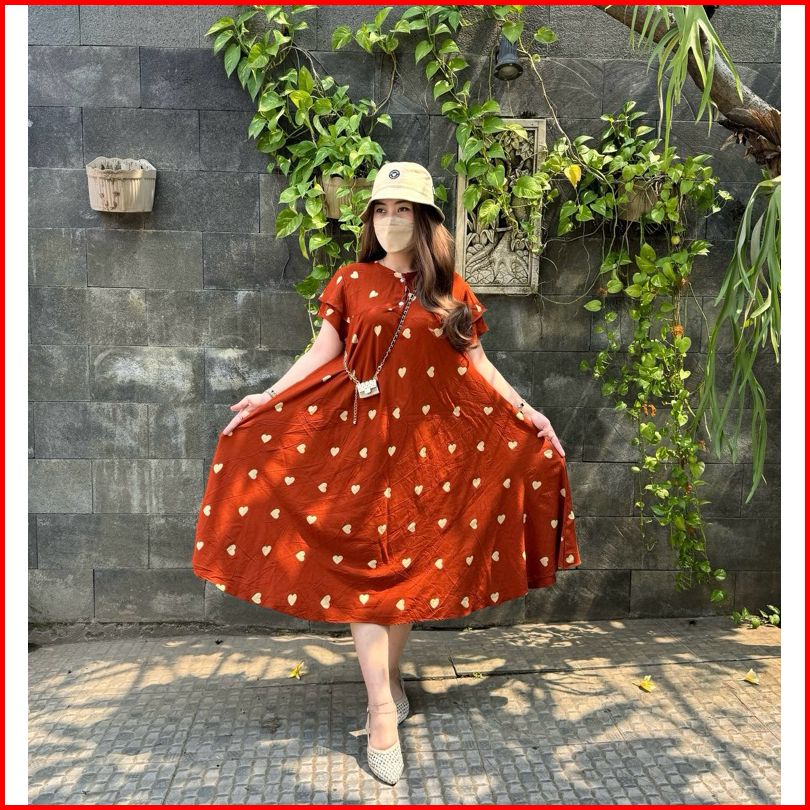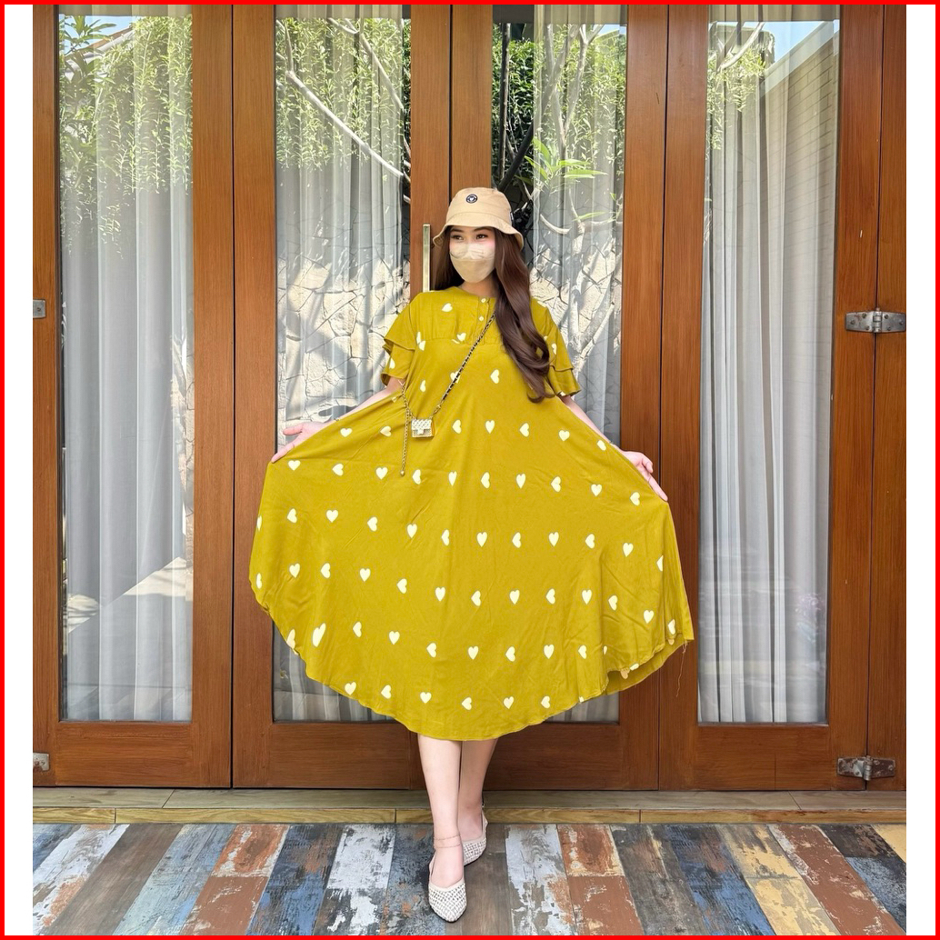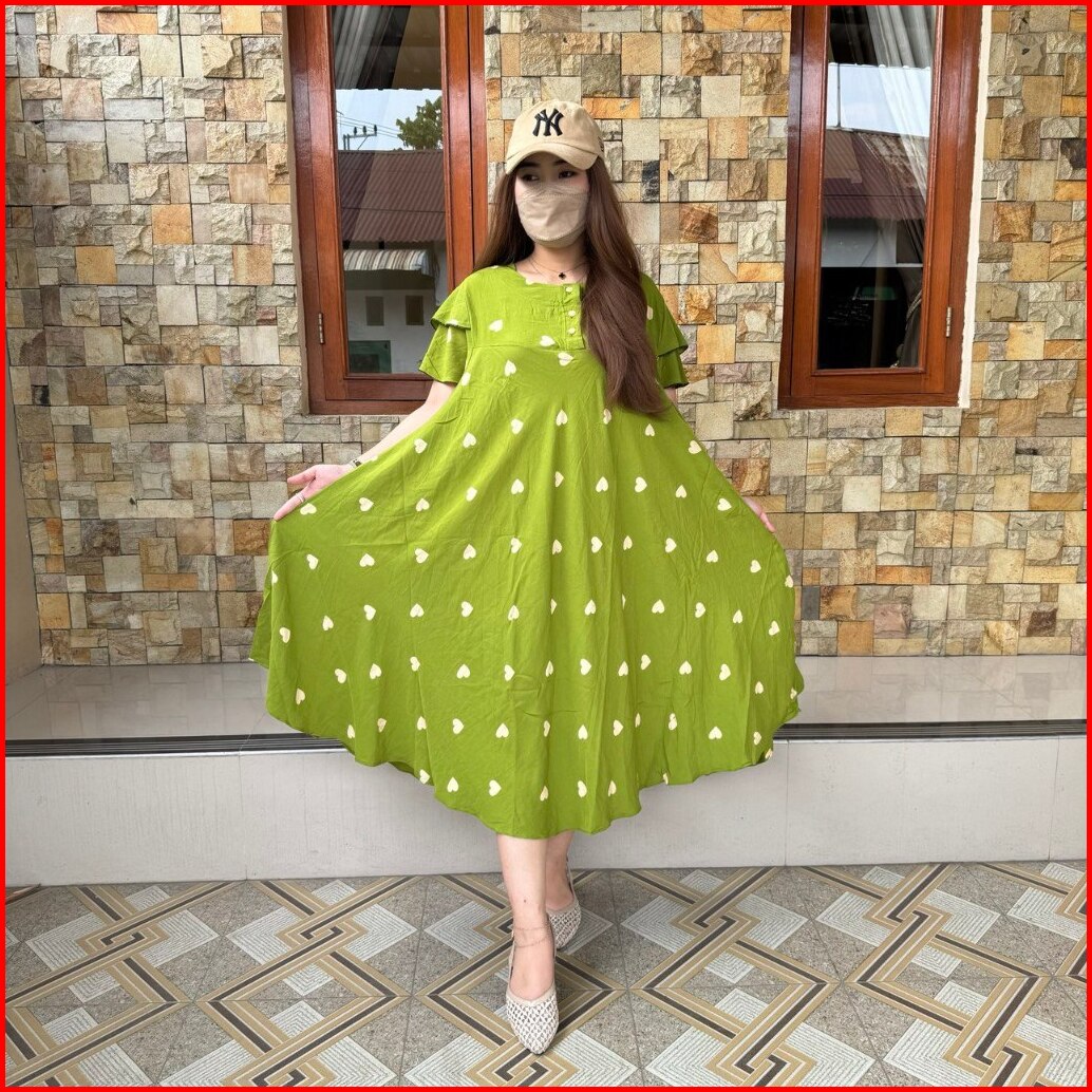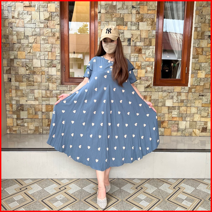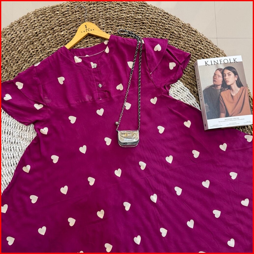 Daster Payung Klok Love Jumbo Bahan Rayon Tebal Busui Kancing - Luvema