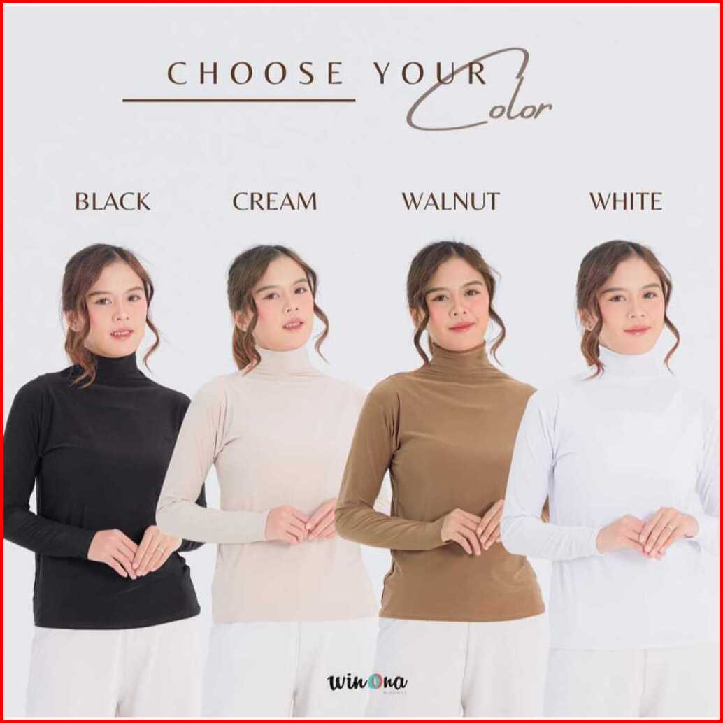 Winonamodest - Lightweight Manset Turtleneck Inner Manset Leher Tinggi Seamless Neck Bahan Jersey Spandex Premium