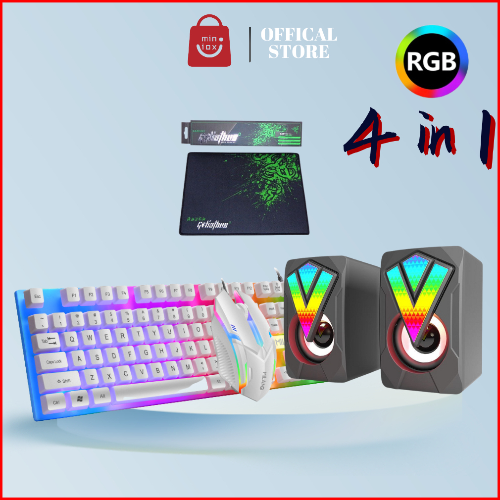 4 In 1 Pengukiran Laser Paket Gaming Keyboard Dan Mouse Rgb Dan Speaker Dan Mousepad Dan Headset Gaming G12 Set Gaming U