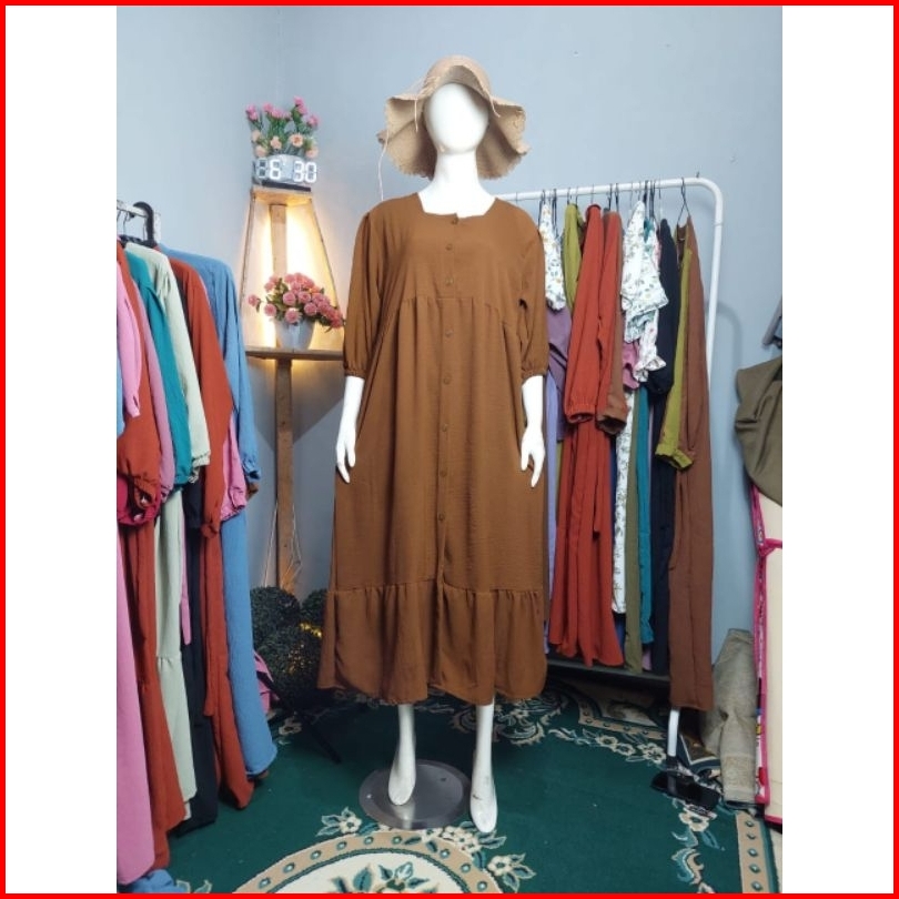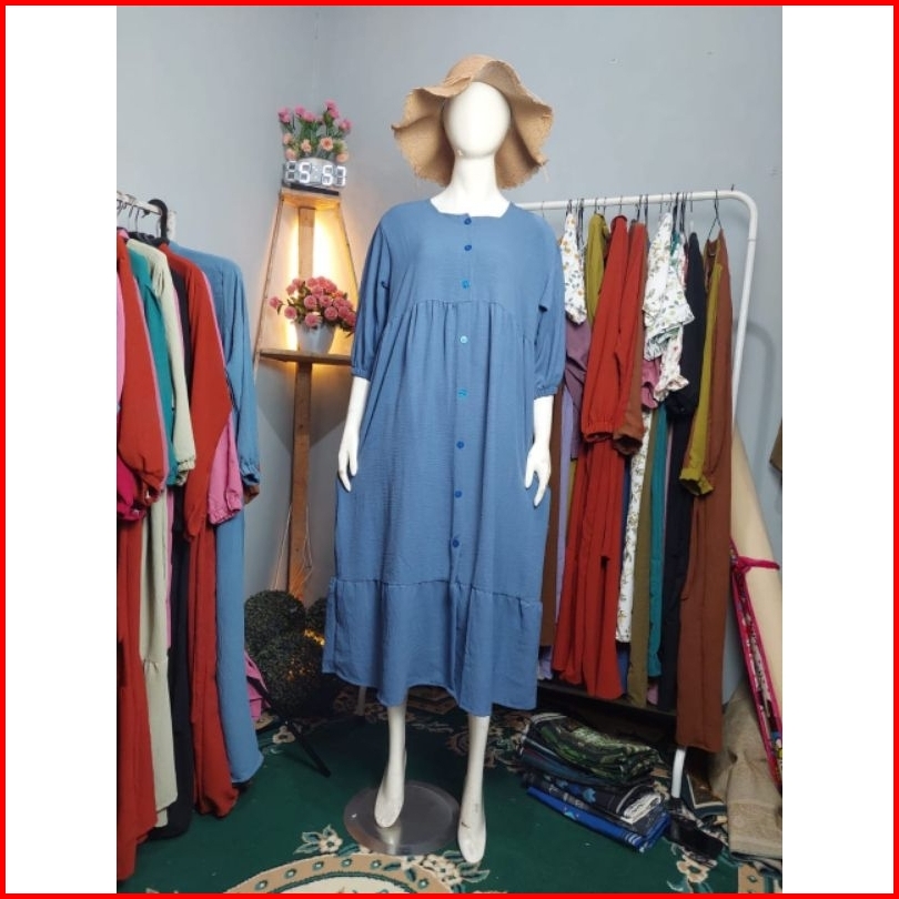 Daster Fuji Kekinian Crinkle Keringkel Kringkel Airflow Wanita Terbaru Premium Original Full Kancing Dress Busui Friendl
