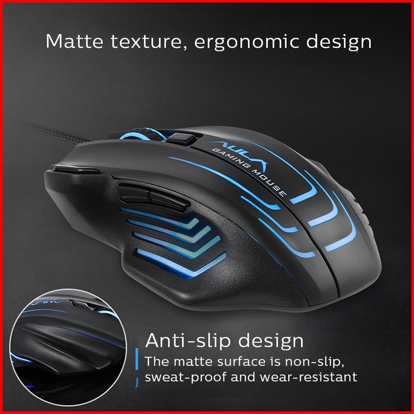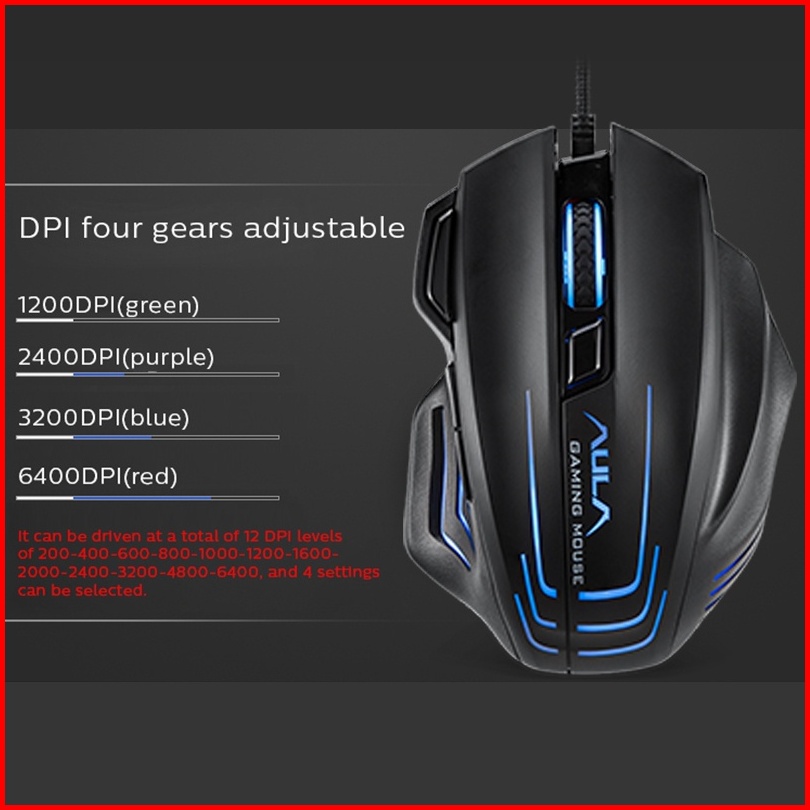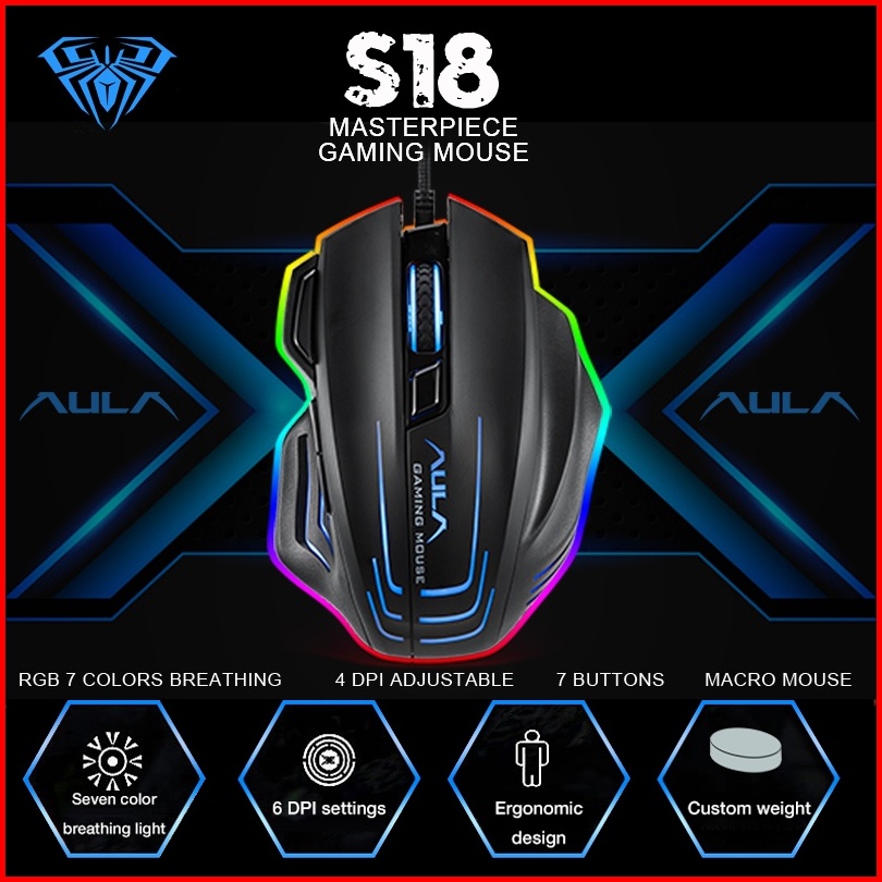 Mouse Gaming Aula S18 - Rgb Led - Sensor Sunplus 6698a - 6400dpi - Macro Sytem