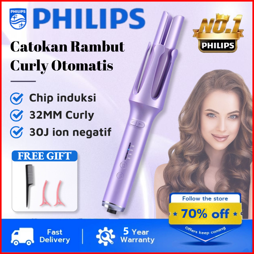 Phillps Catokan Rambut Curly Catokan Keriting Otomatis Tahanlama 32mm Iron Ion Negatif Catok Rambut