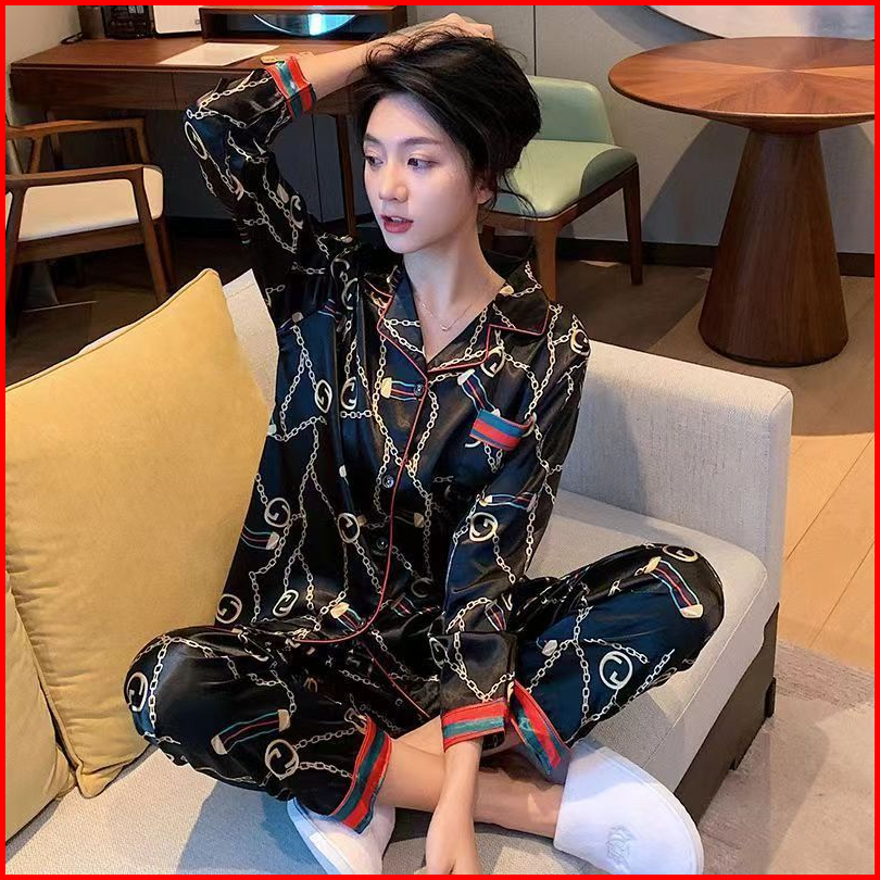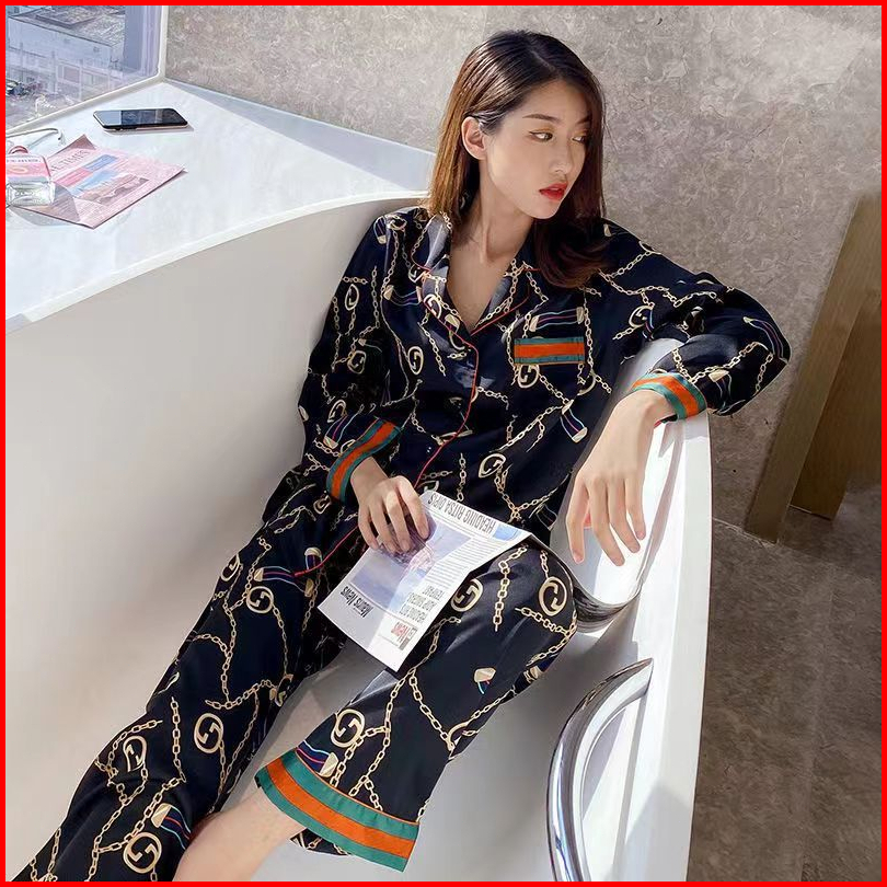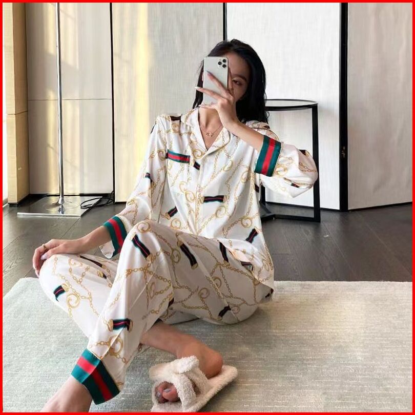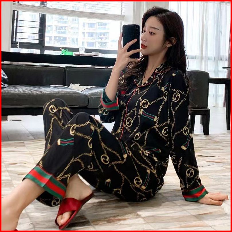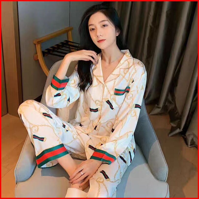 Setelan Piyama Satin Wanita Lengan Panjang Baju Tidur Pakaian Rumah Wanita Korea Style