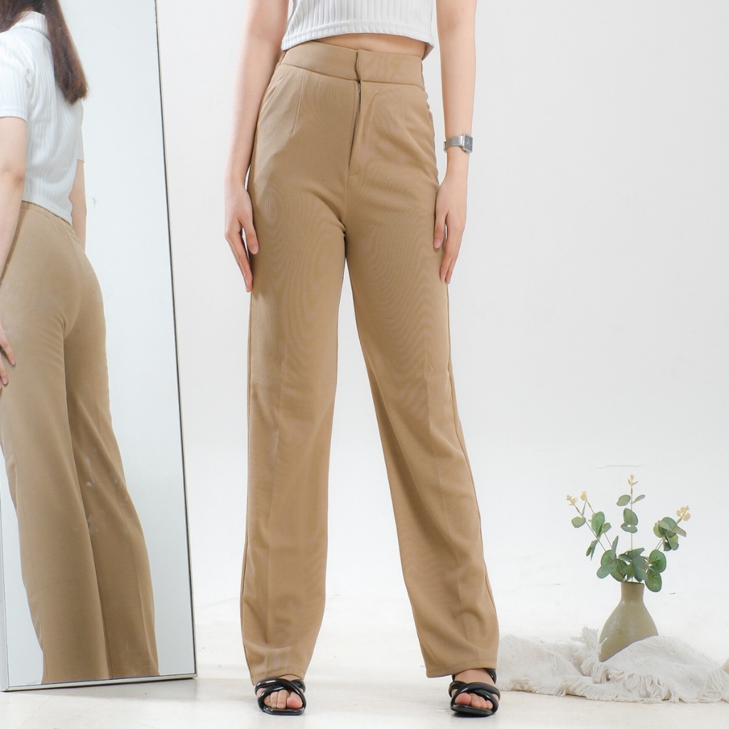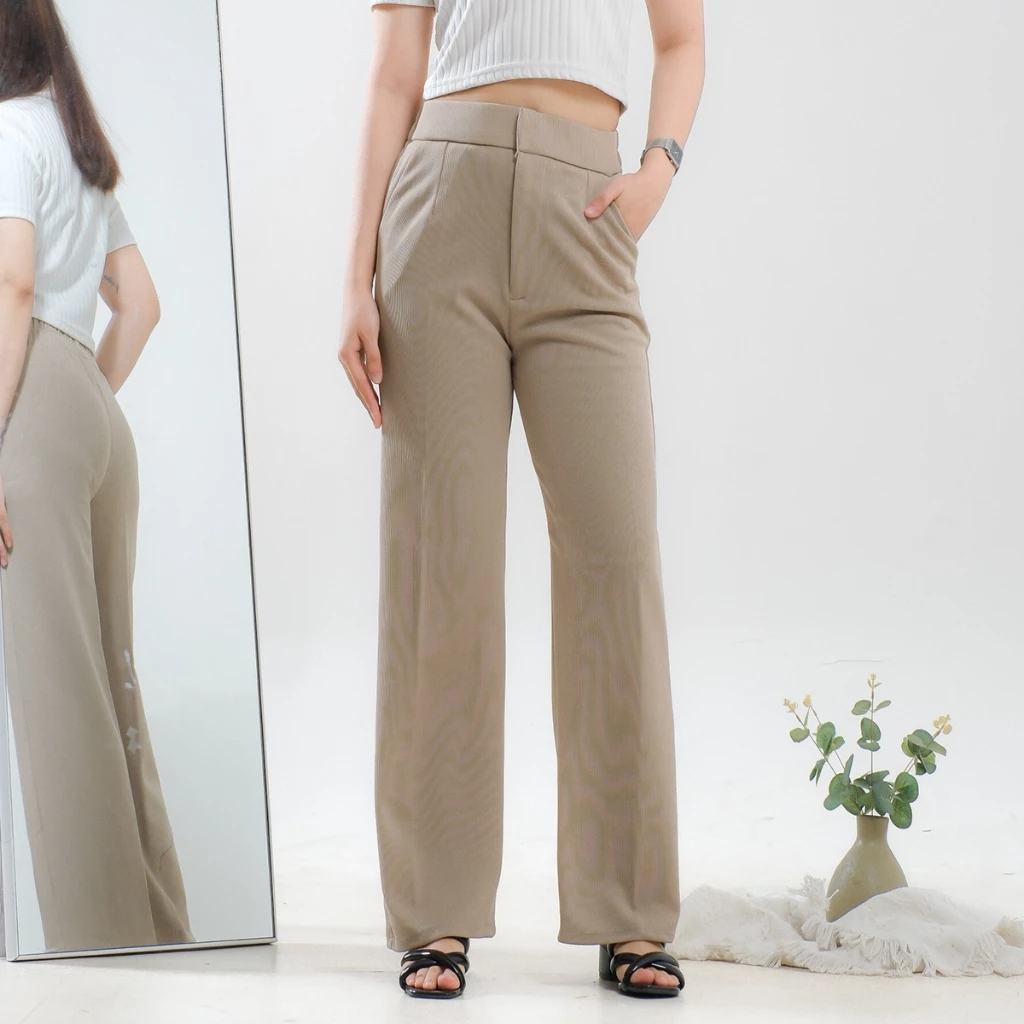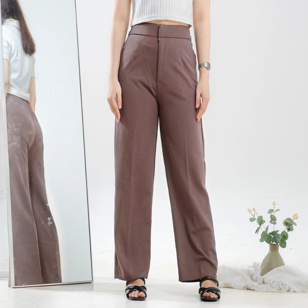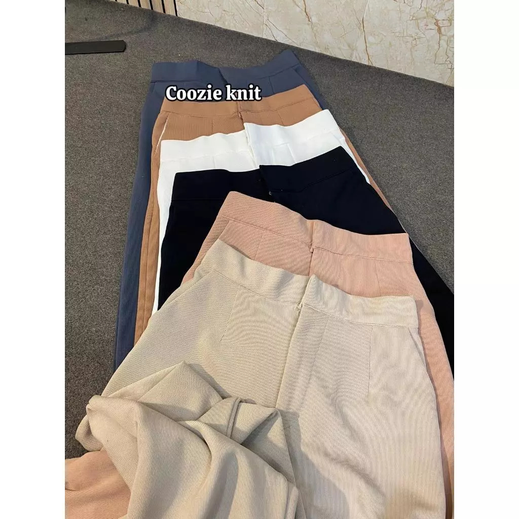 (Gratis Ongkir) Cozie pants Long Cullote - Knit Rib Loose pants - Highwaist
