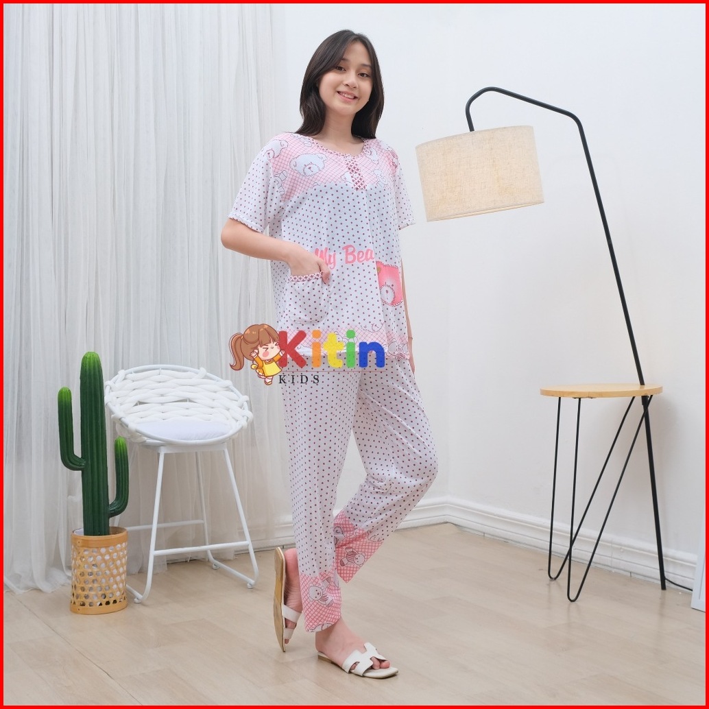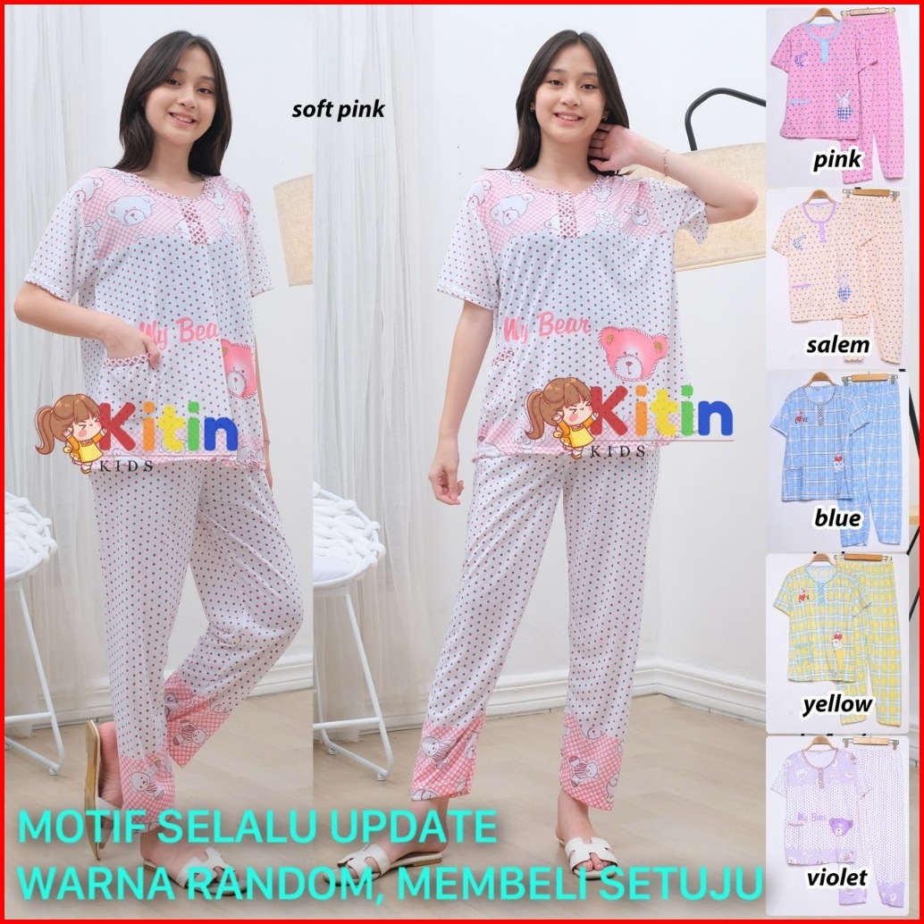 Cit - Cp Setelan Baju Piyama Dan Tidur Anak Cewek Perempuan Tanggung 10-12 Tahun Abg Jumbo Aplikasi Kantong Kancing Moti