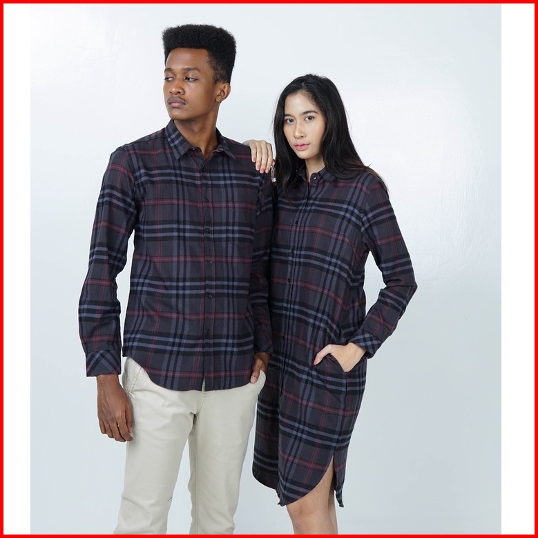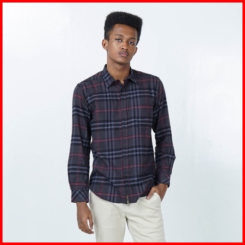 Benhill Kemeja Pria Flannel Panjang Kotak Abu 43-44-11633