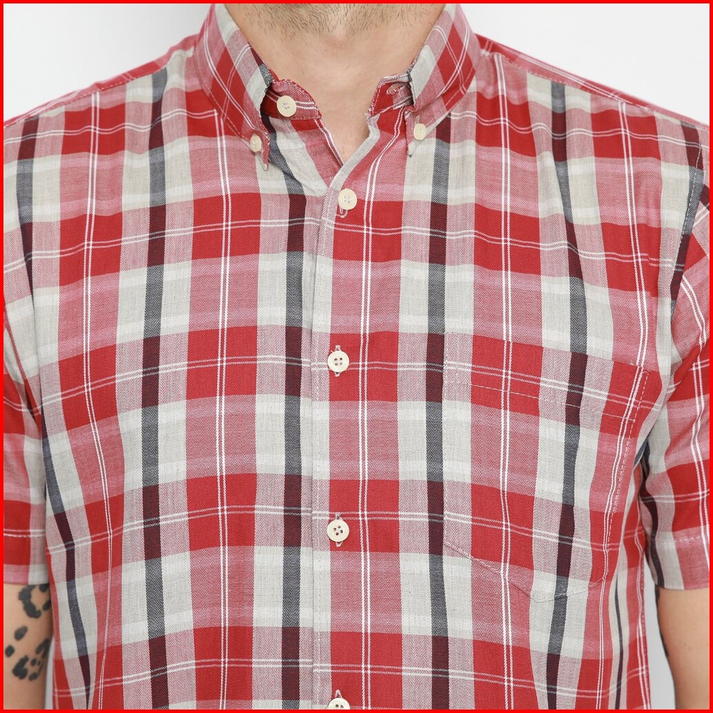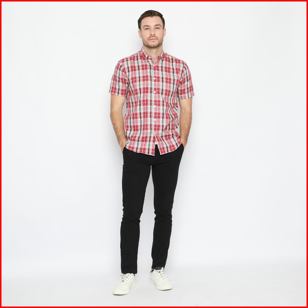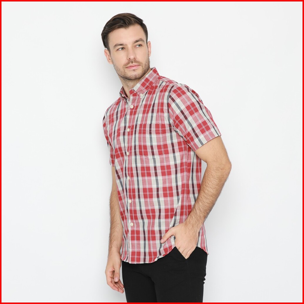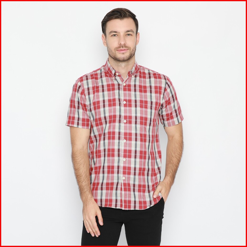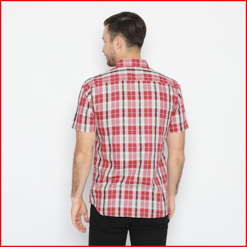 Platini Kemeja Flanel Pria Lengan Pendek Merah 73245