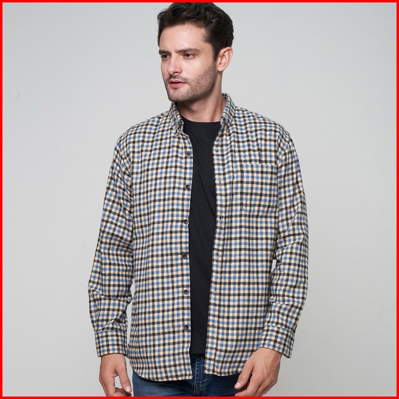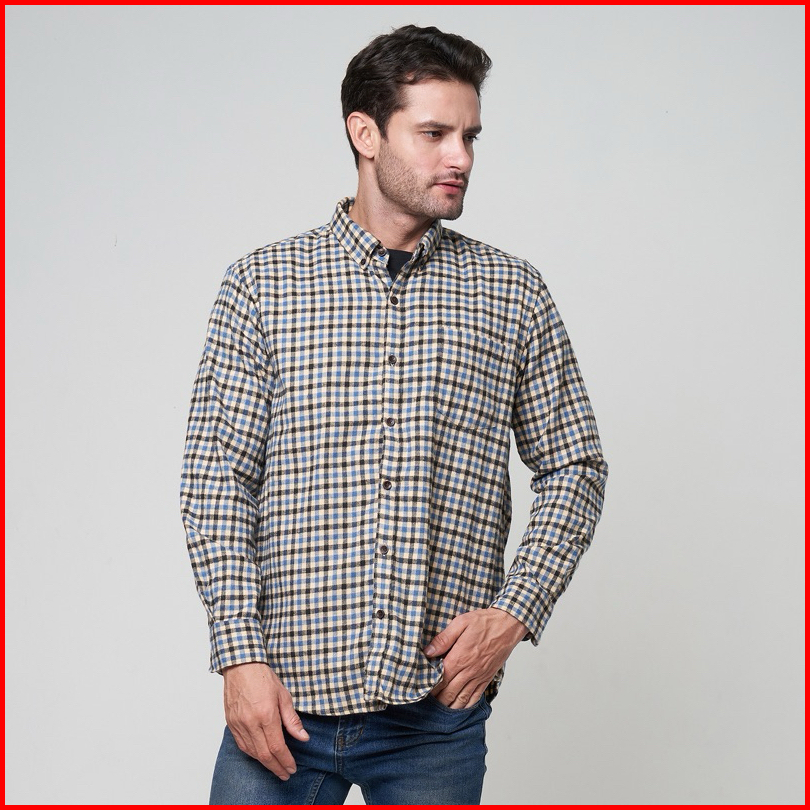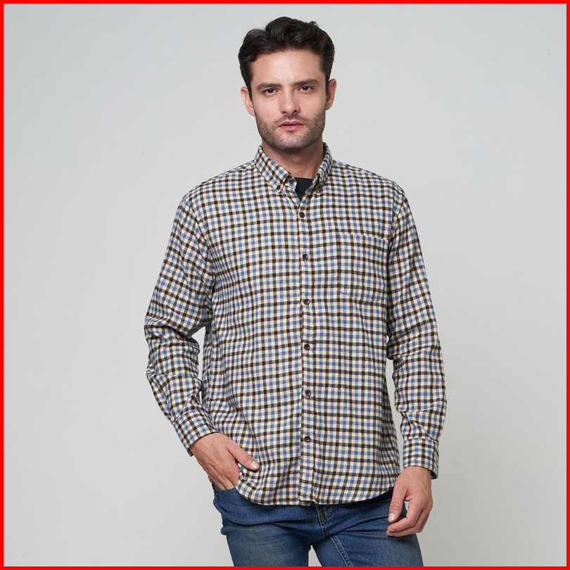 Peternation Kemeja Flanel Pria Wool Basic Panjang Regular Fit