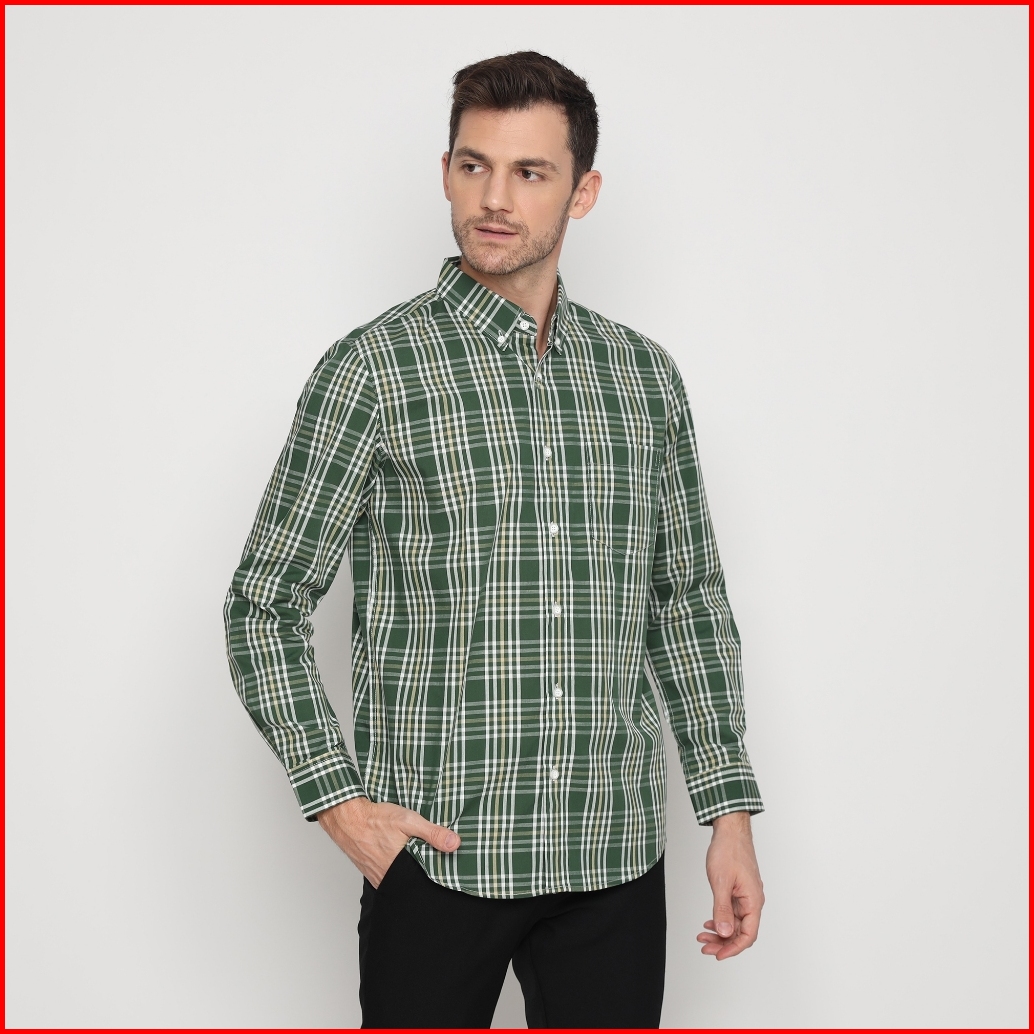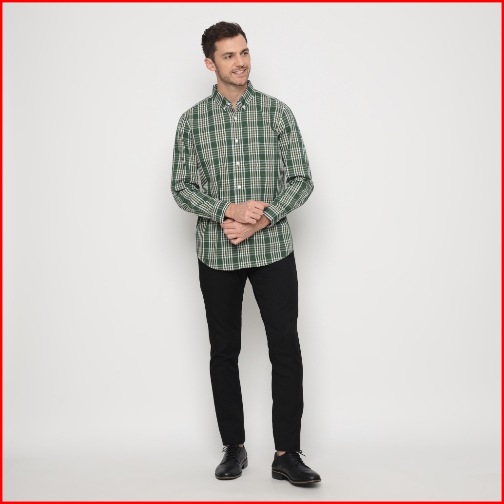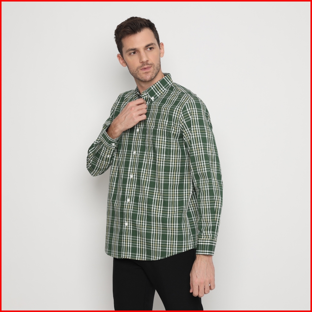 Platini Kemeja Lengan Panjang Katun Motif Kotak Hijau 76461