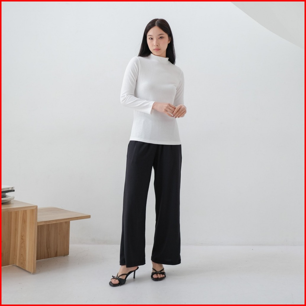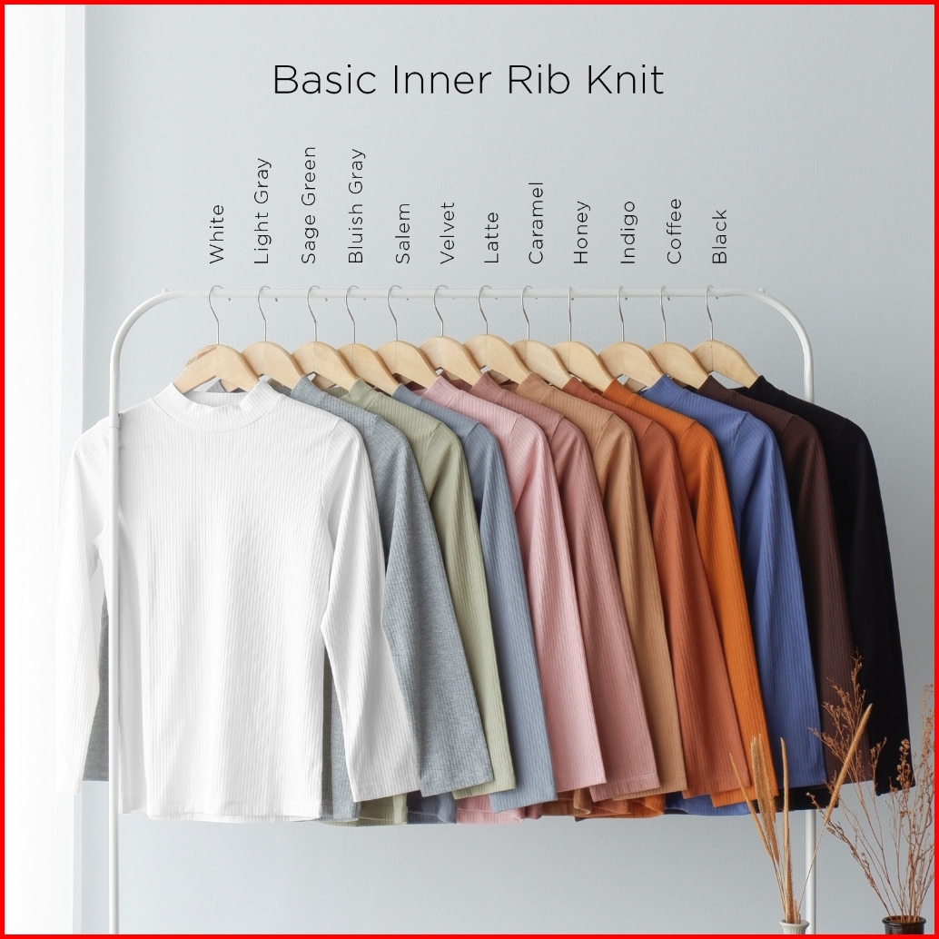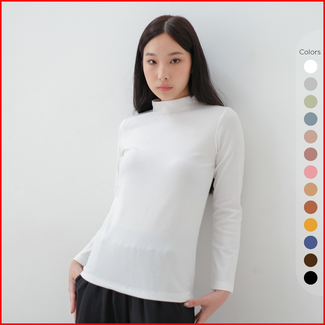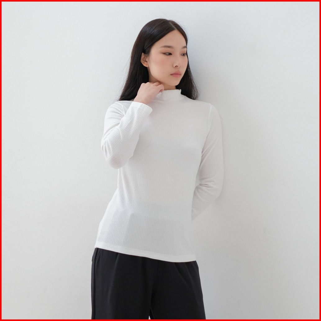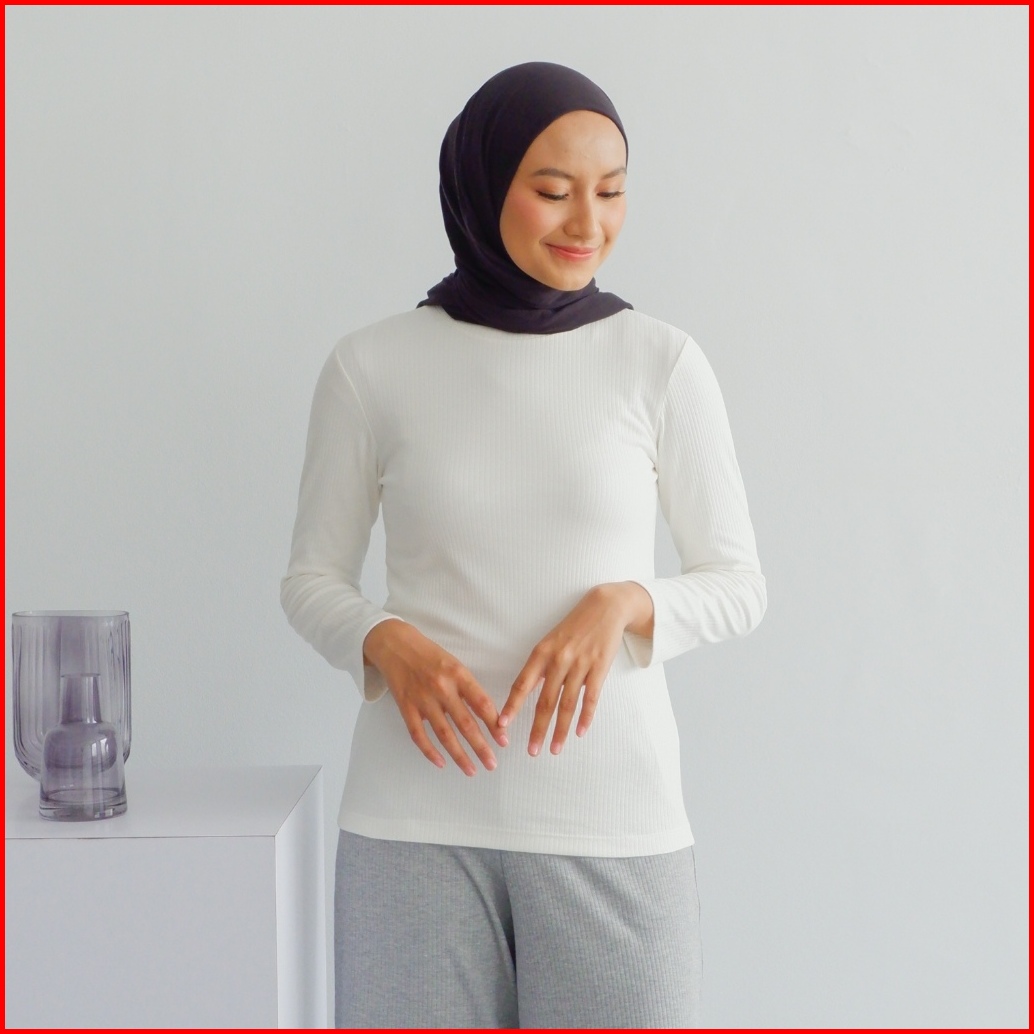 Isla Basic Inner Kerah Tinggi - Inner Texture - Manset Kaos - Inner Wanita Lengan Panjang - Atasan - Kaos