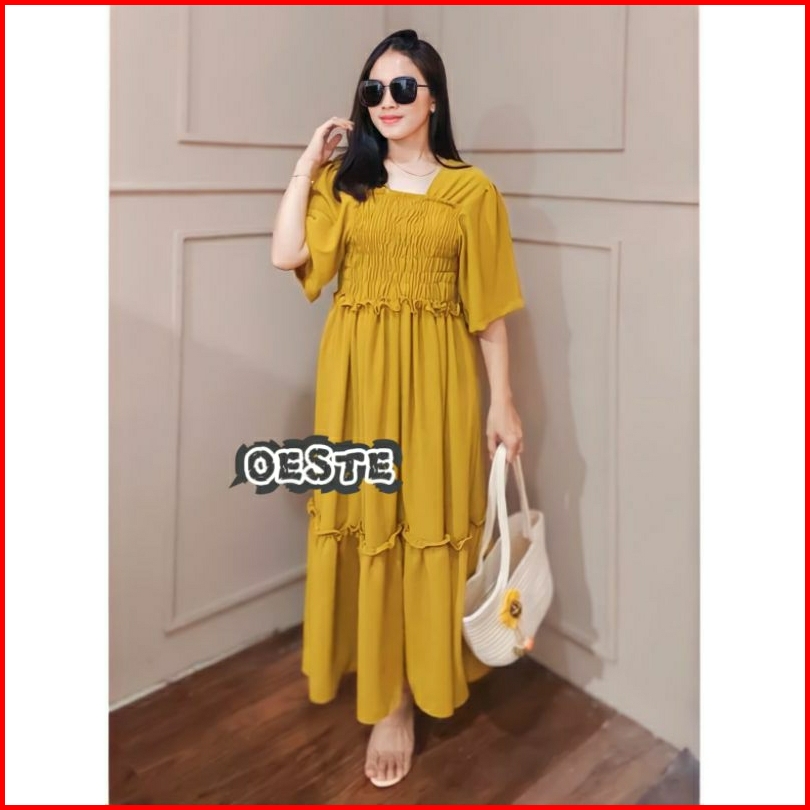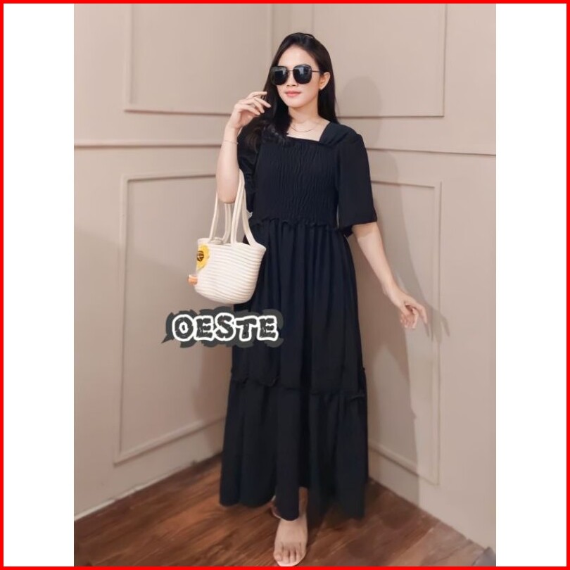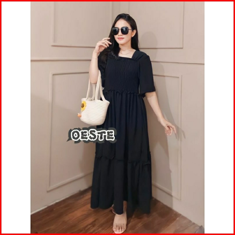Terbaru Daster Amanda Kerut Panjang Daster Crinkle Daster Cringkle Airflow Homedress Wanita Kekinian Long Dress Depan Be