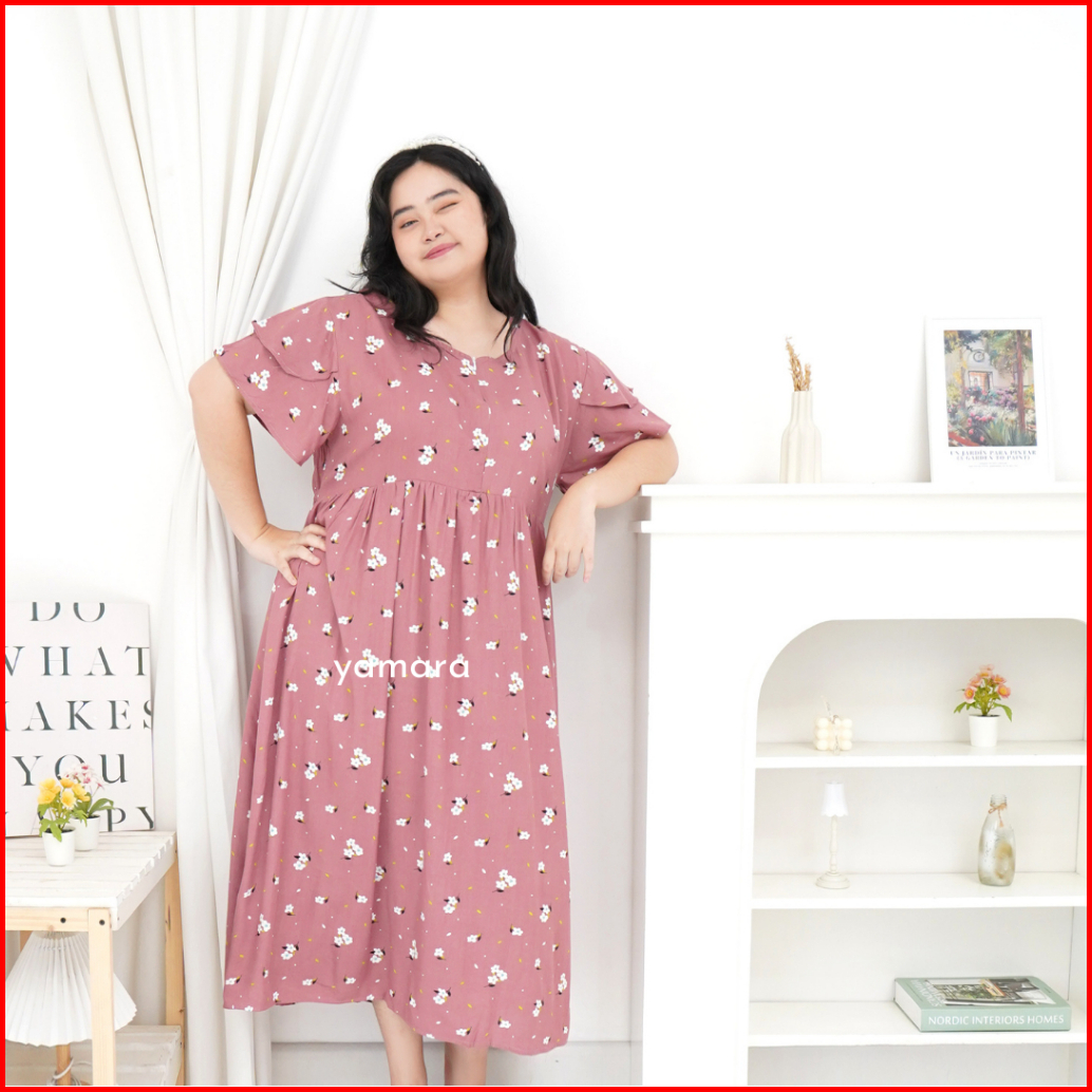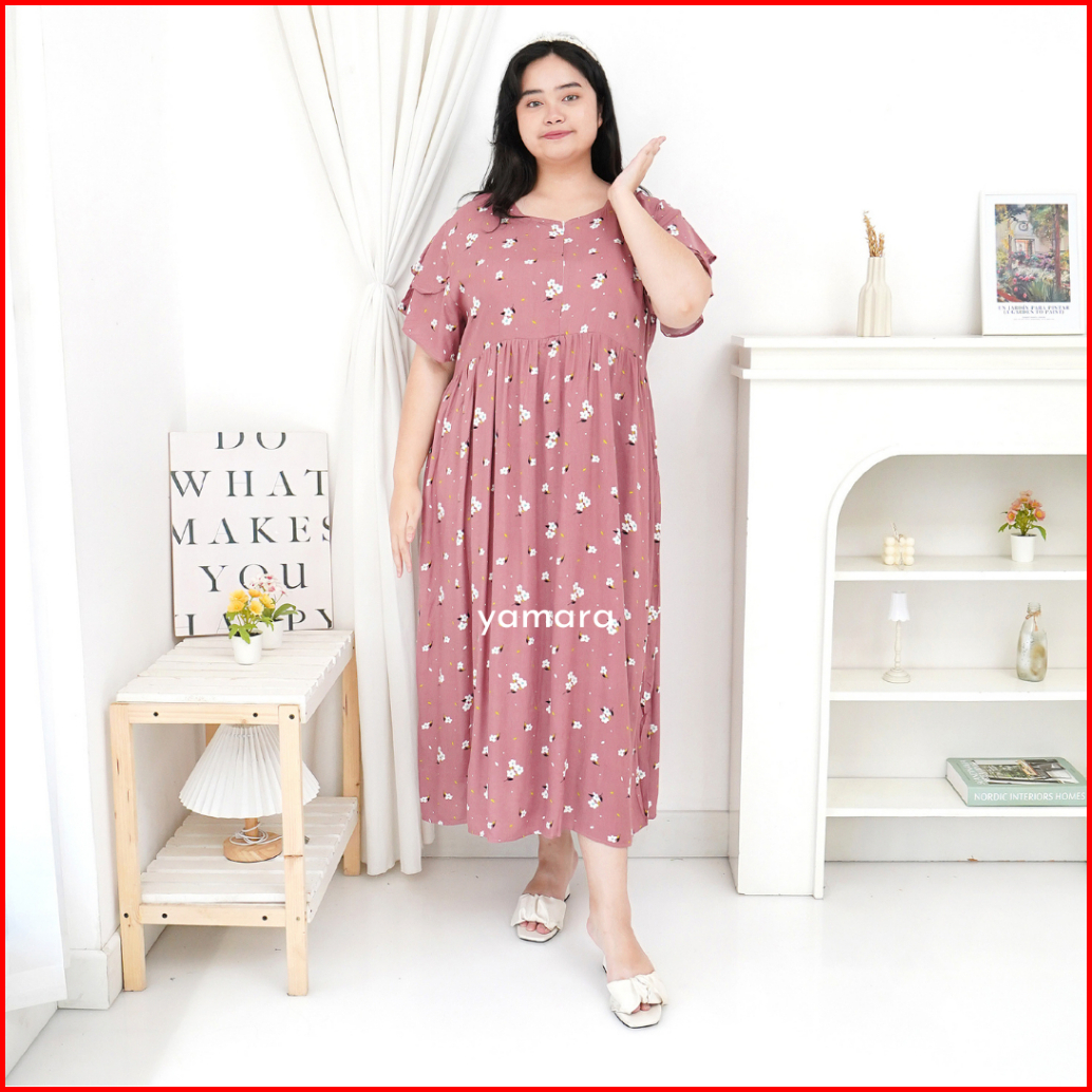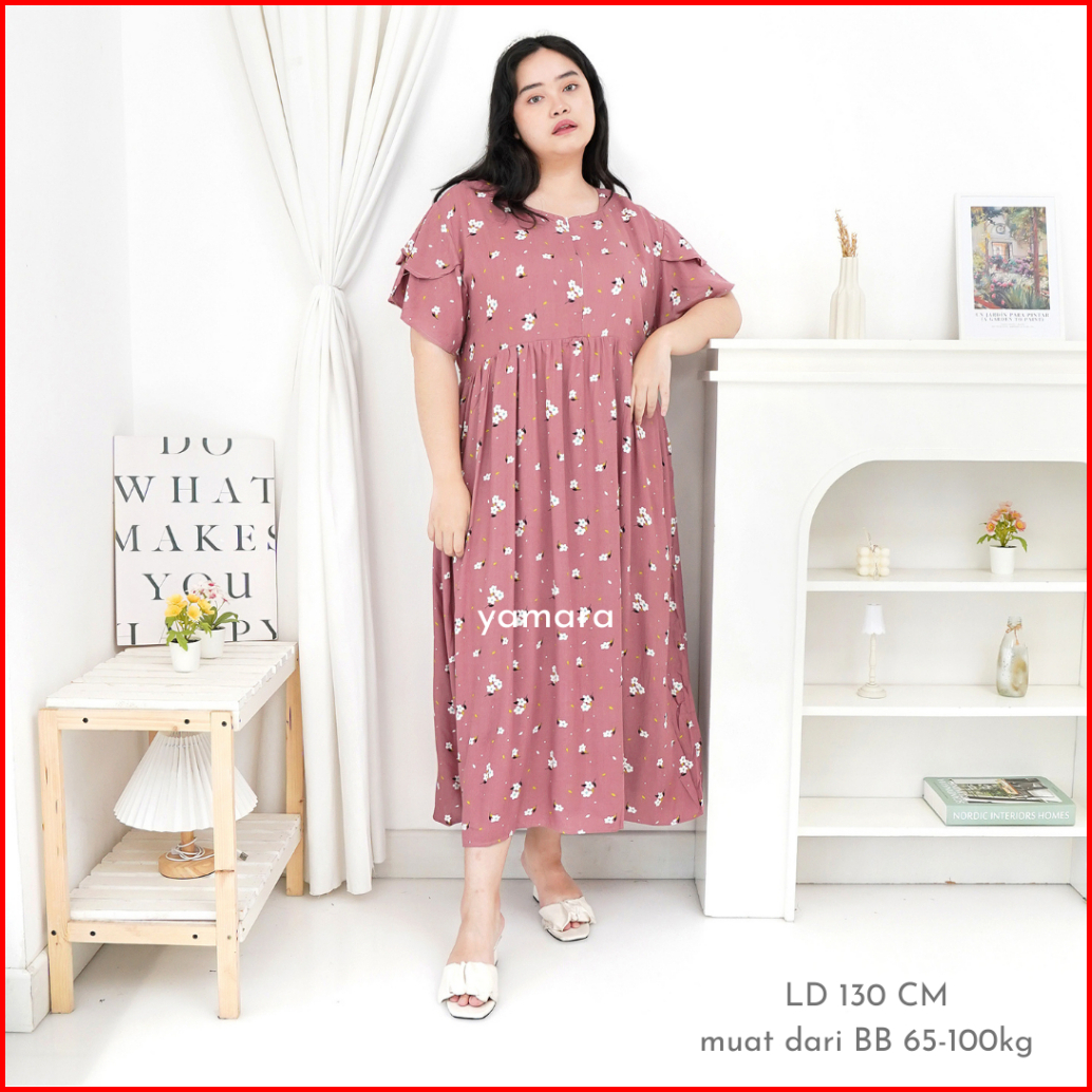 Yamara Tita Dress Jumbo Daster Jumbo Panjang Semata Kaki Ld 130 Muat Bb 100kg Busui Bumil Friendly