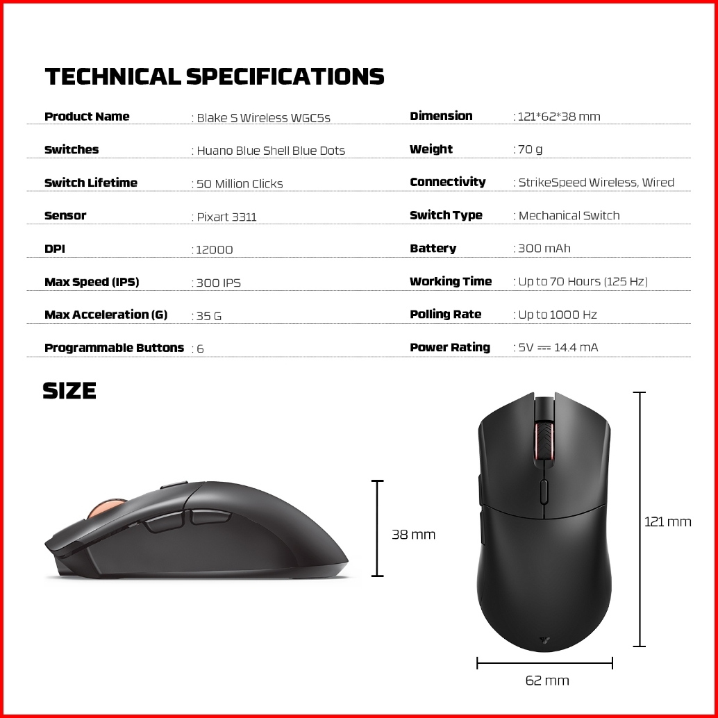 Fantech Dual Mode Wireless Mouse Gaming Wgc5s Rechargeable Pixart 3311