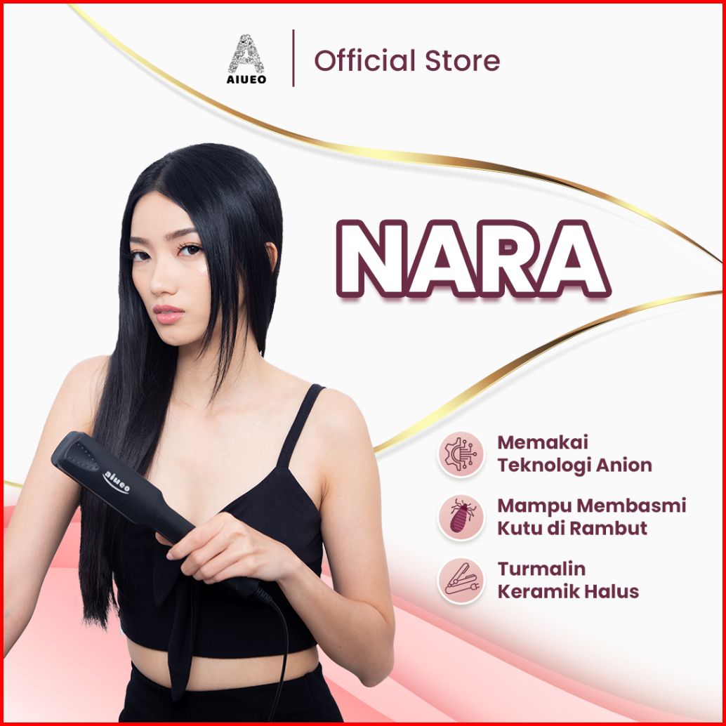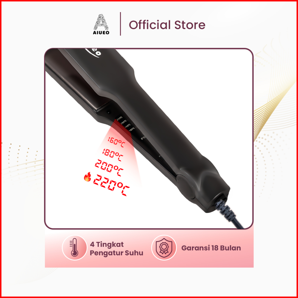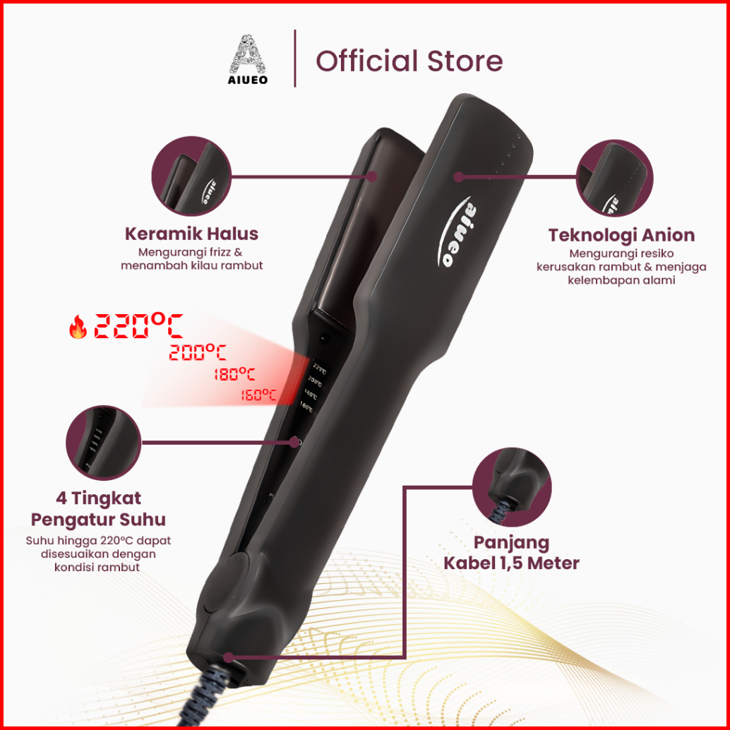 Aiueo Catokan Rambut Nara 329 Catok Rambut 2 In 1 Meluruskan Dan Keriting Rambut Plat Lebar Warna Hitam