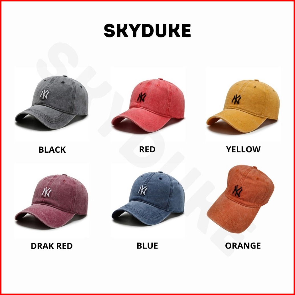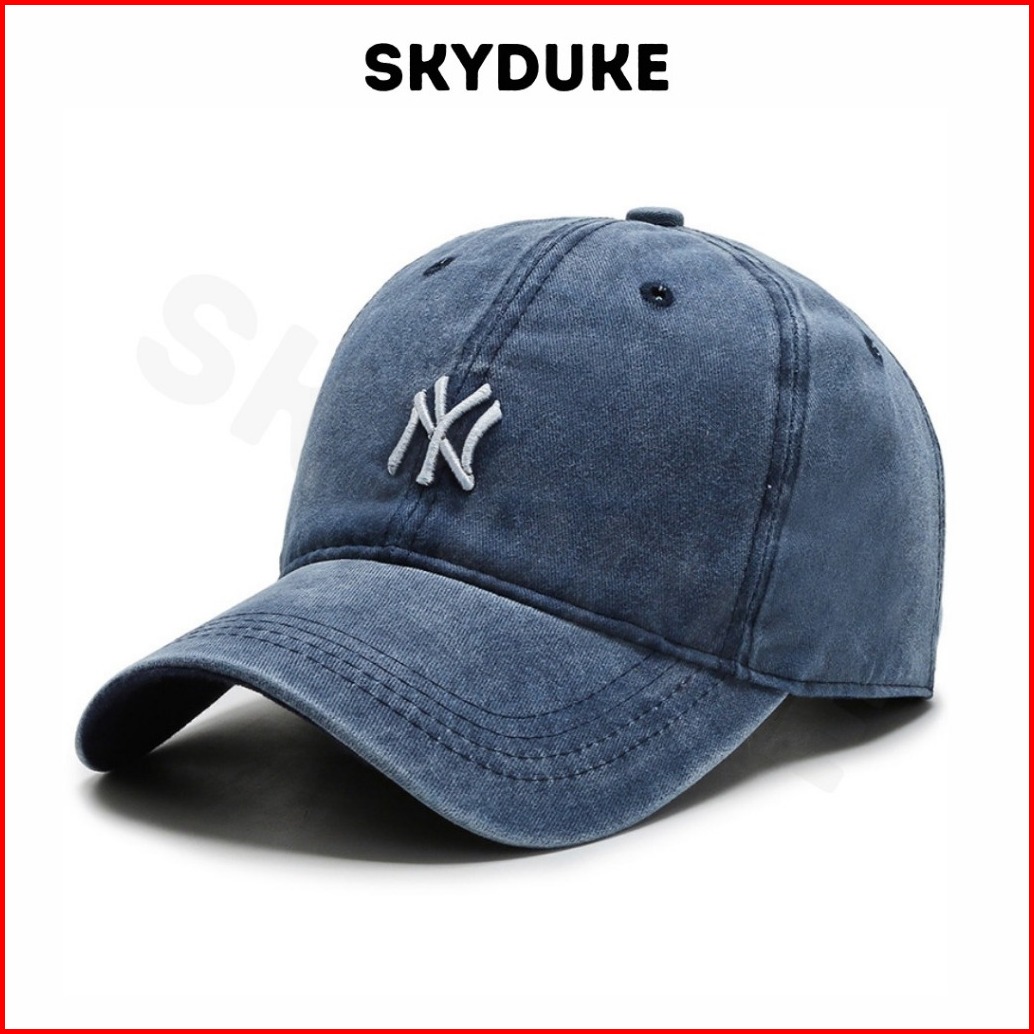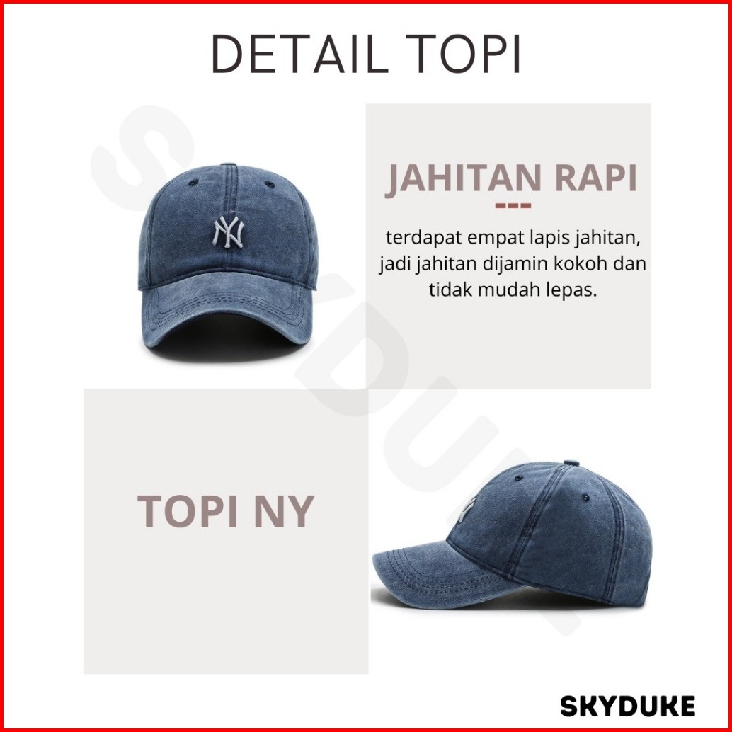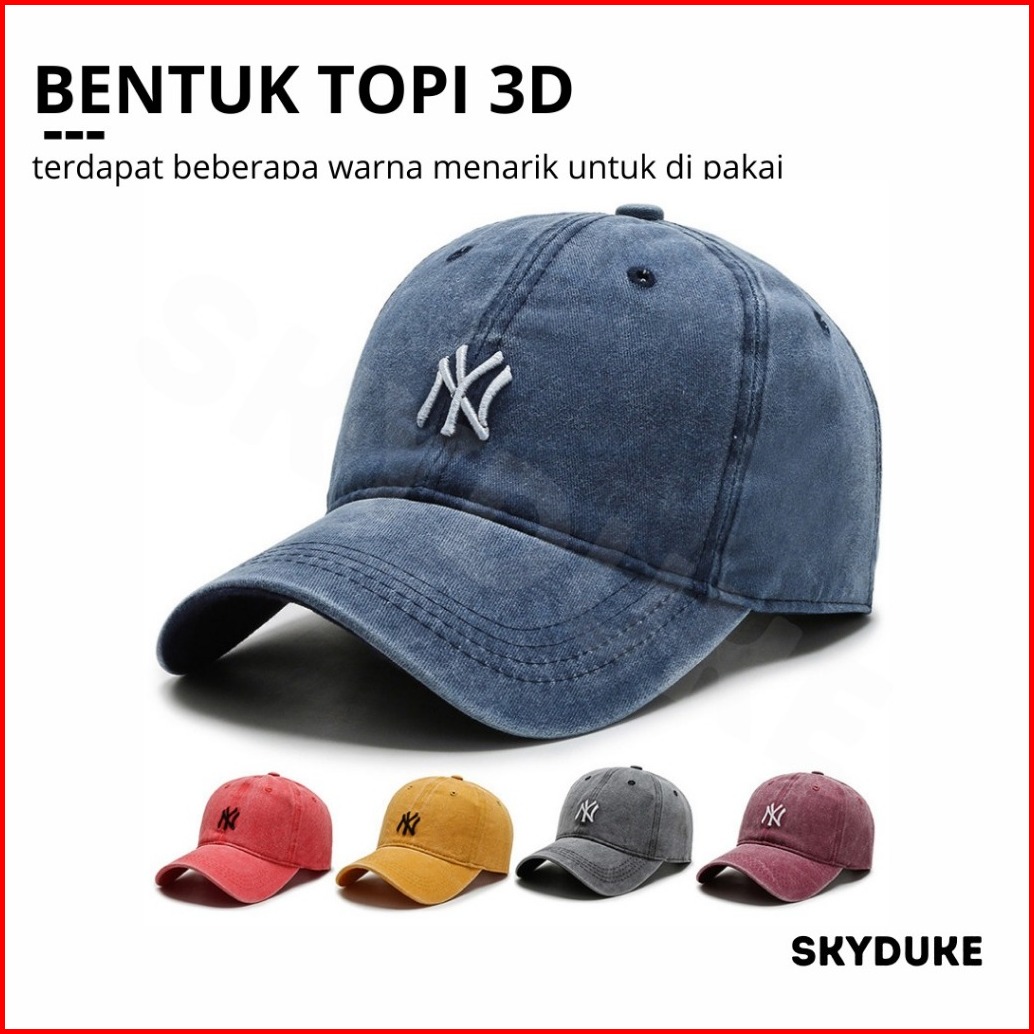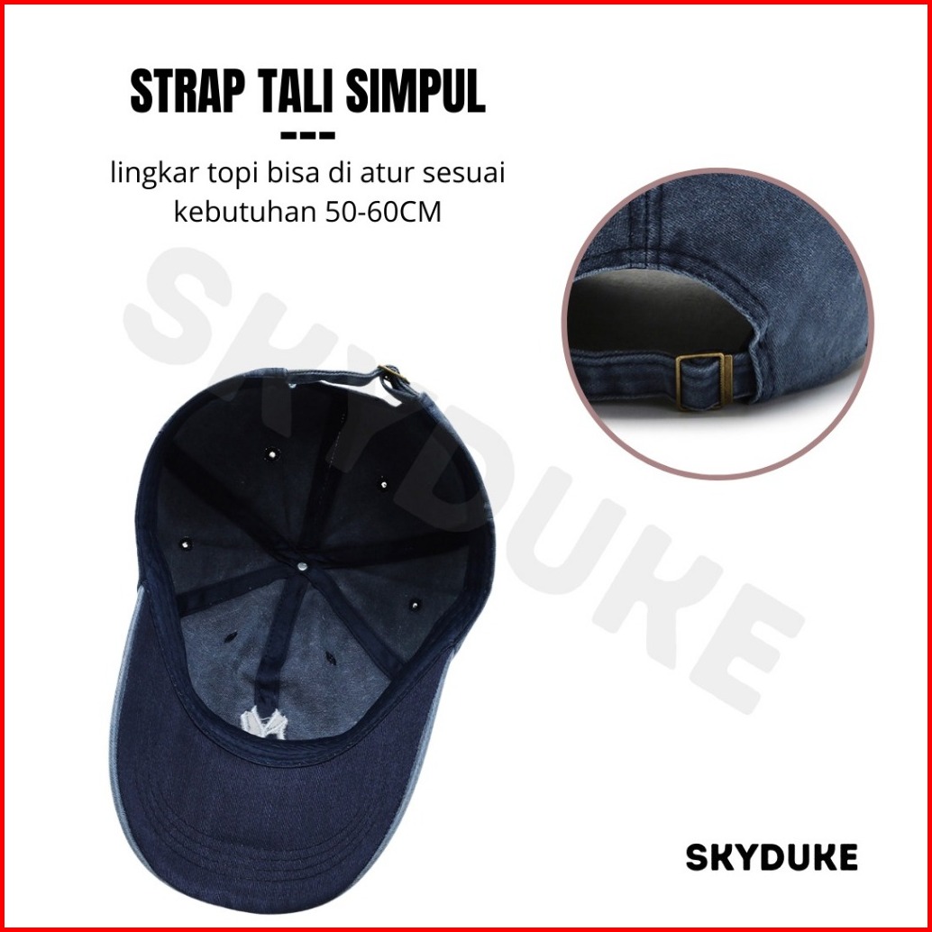 Skyduke-unisex Topi Baseball Pria Wanita Hat Model Wash Denim Jeans Bordir Simple Ny Bahan Katun Lembut