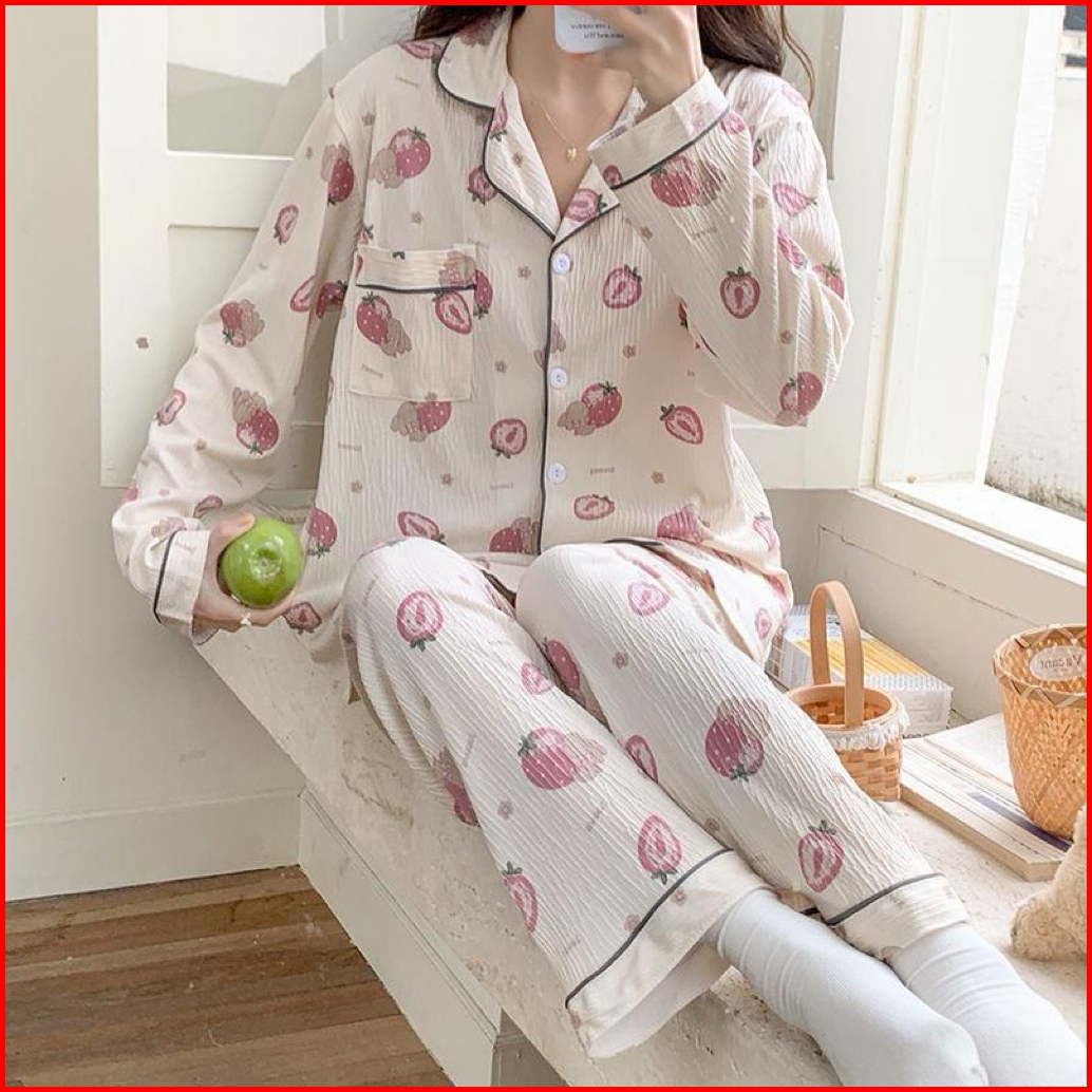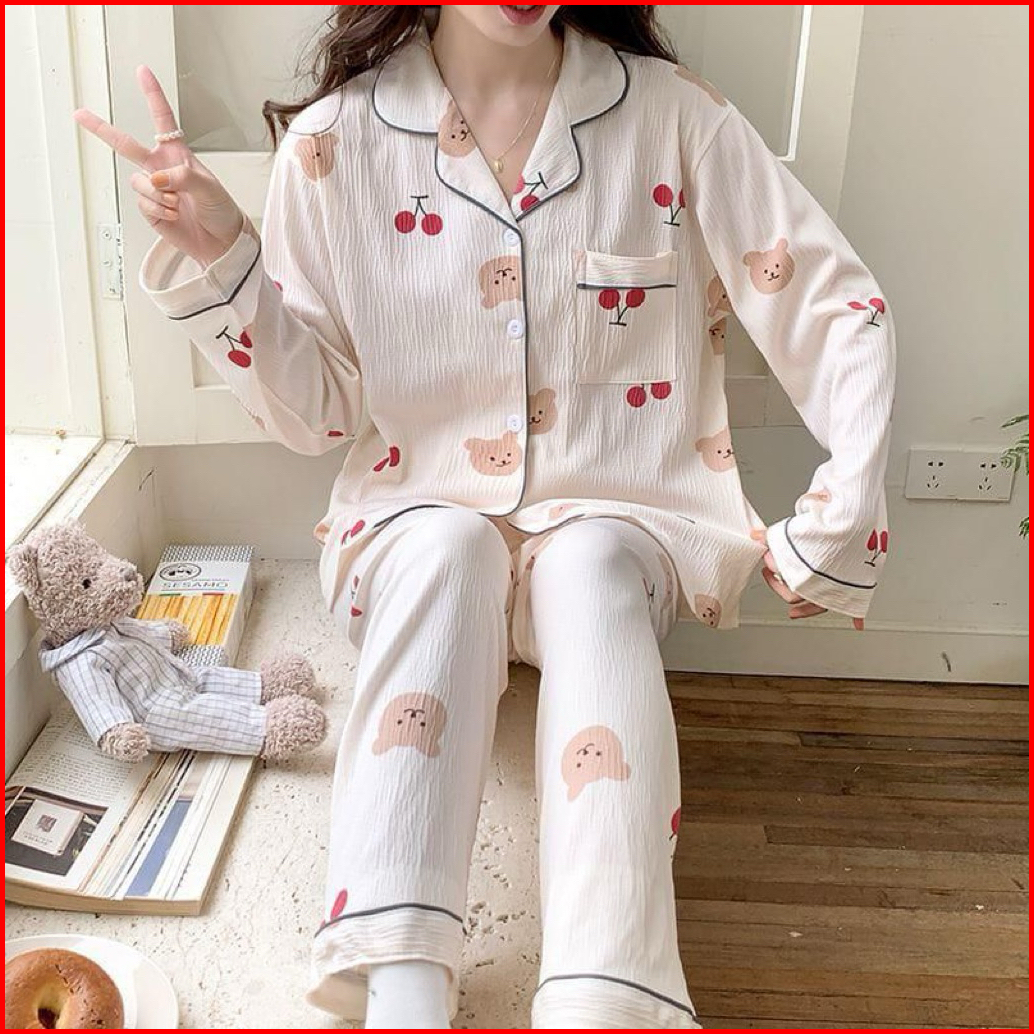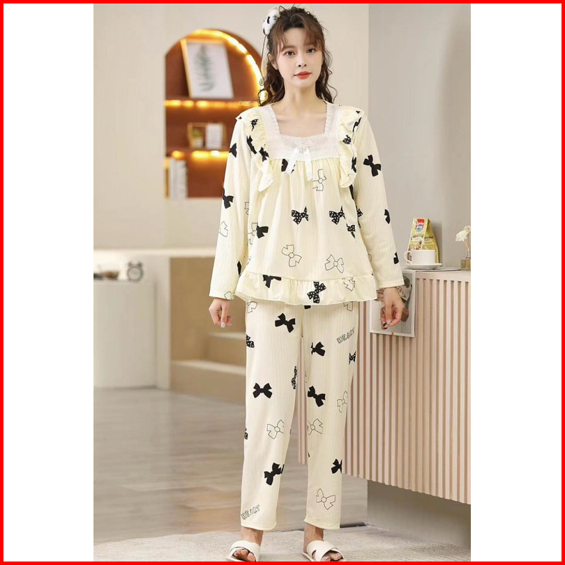 Baju Tidur Wanita Korean Style Lengan Panjang Celana Panjang Dewasa Import