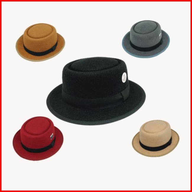 Topi Pork Pie Hat Topi Fedora Bulat Porkpie Bundar