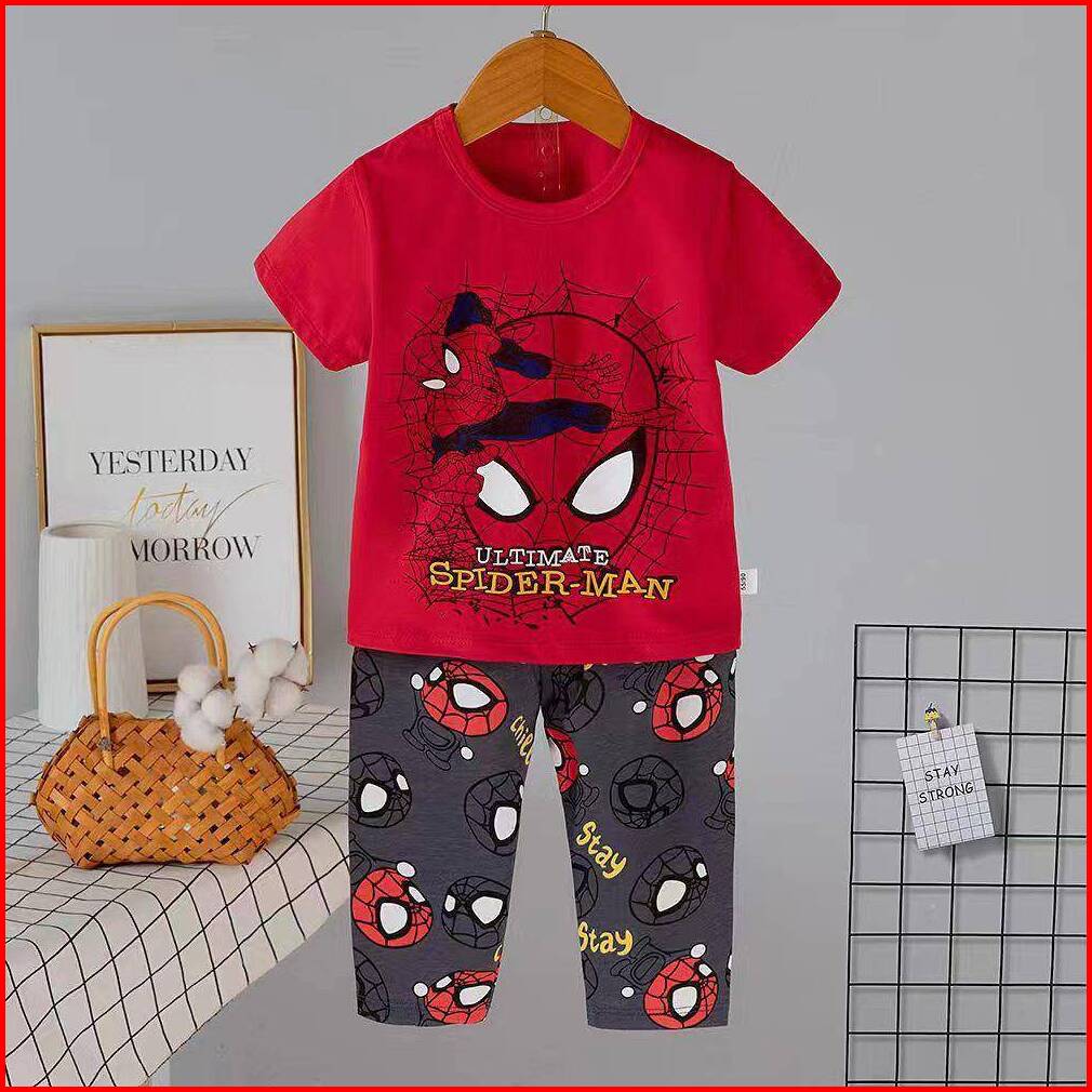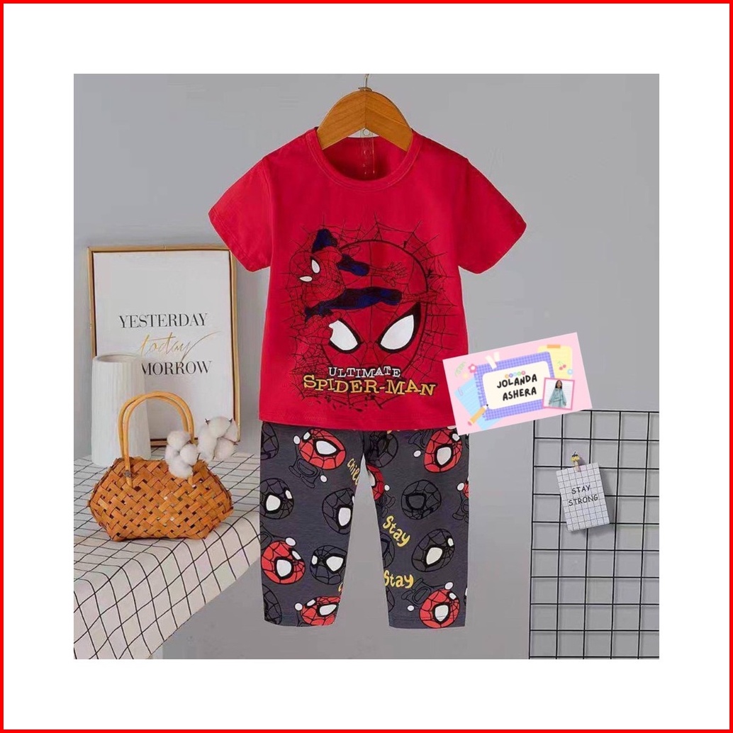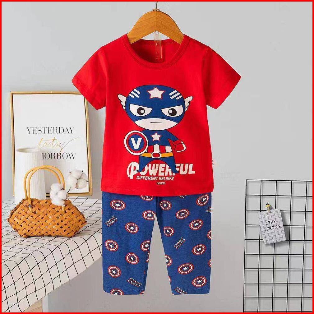 Setelan Baju Tidur Anak Cowok Celana Panjang Tangan Pendek Umur 1 - 12 Tahun Piyama Anak Cowok Freeongkir Back