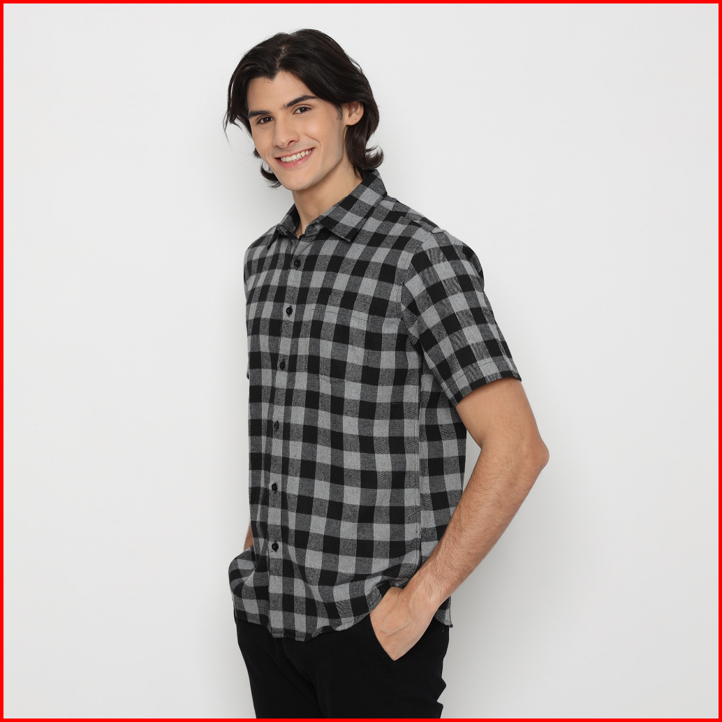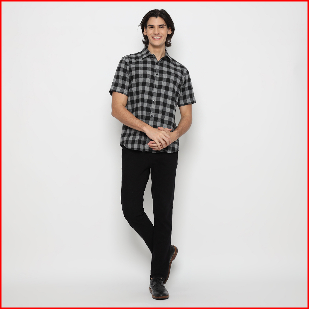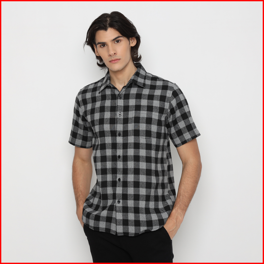 Platini Kemeja Motif Kotak Pria Lengan Pendek Flanel Abu 73382