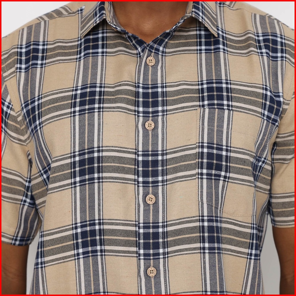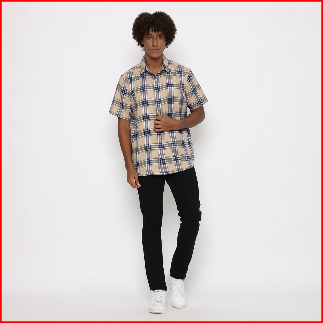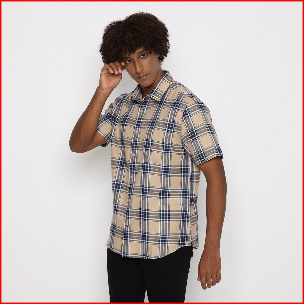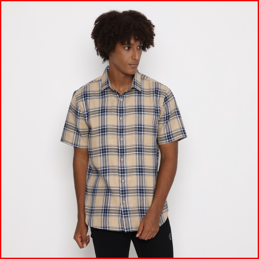 Platini Kemeja Kotak Pria Lengan Pendek Coklat Muda 73364