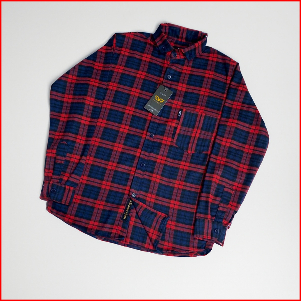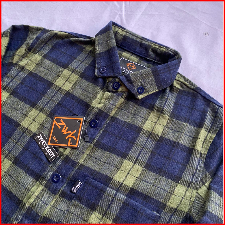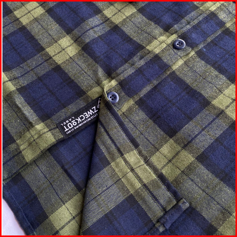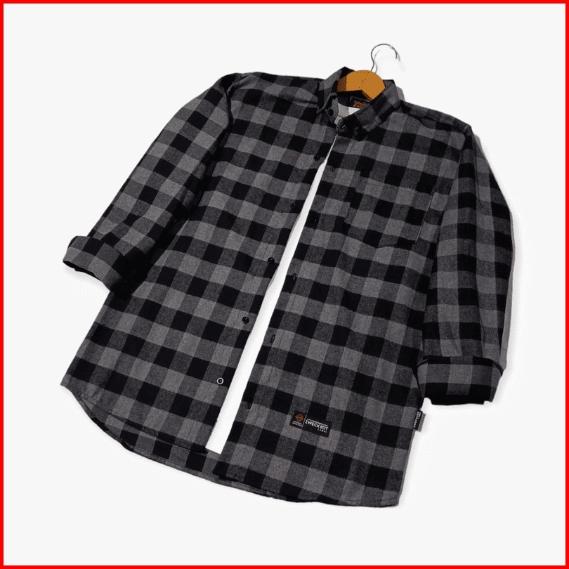 Zweckout Label Kemeja Flanel Pria Lengan Panjang Jumbo Motif Garis Kotak Light Grey Black