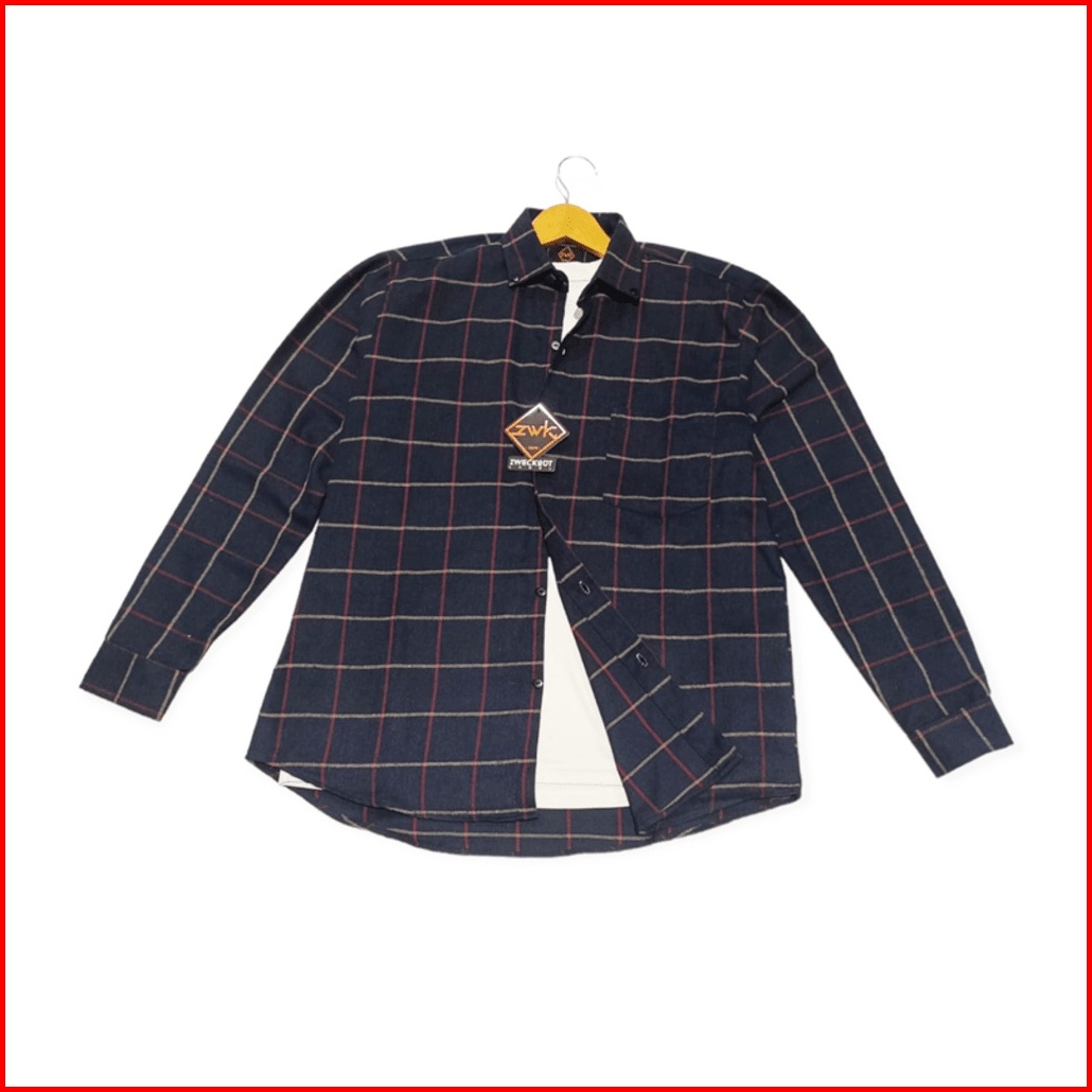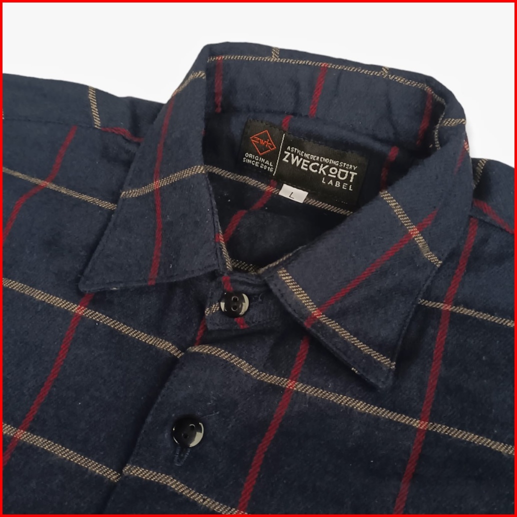 Zweckout Label - Kemeja Flanel Pria Lengan Panjang Kasual Flannel Motif Kotak