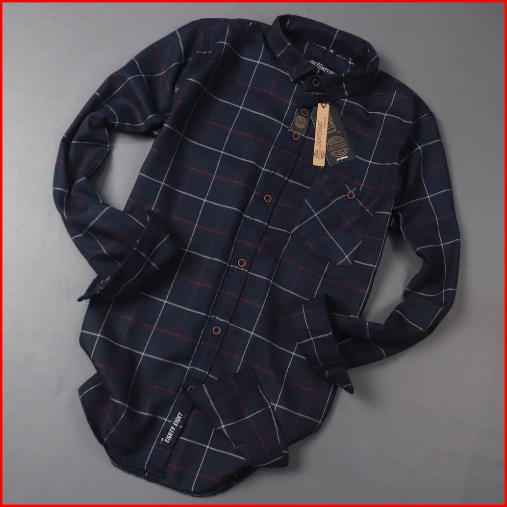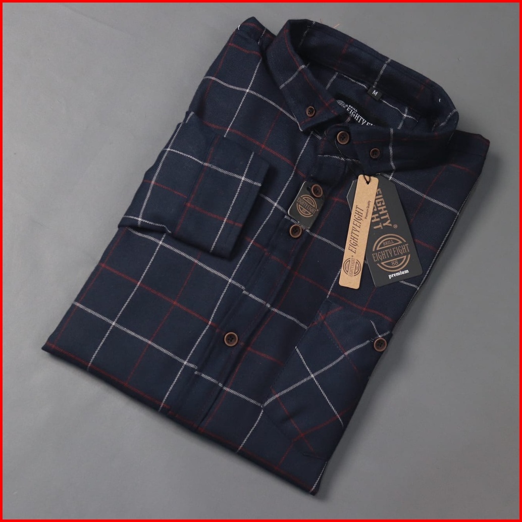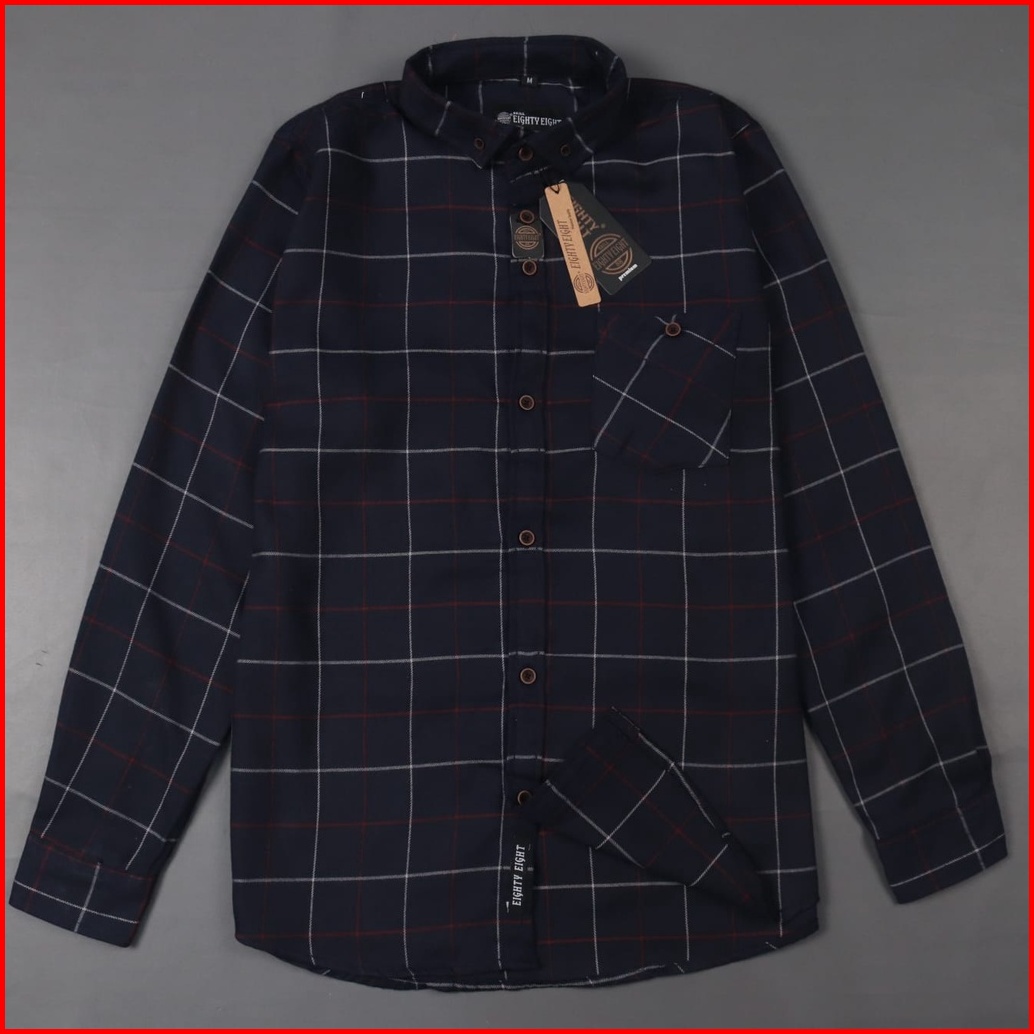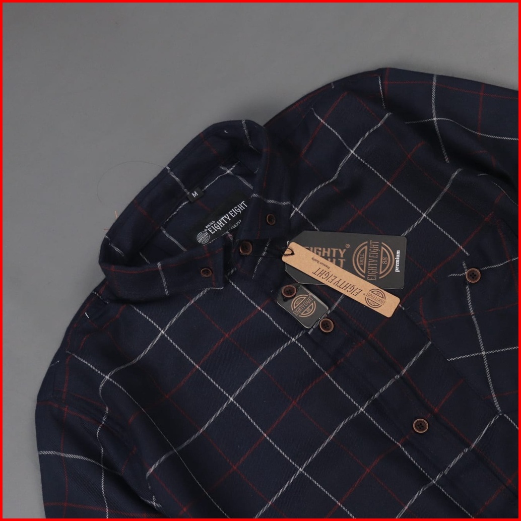 Brill Eighty Eight - Kemeja Flanel Panjang Premium Navy Maroon 88 L3349