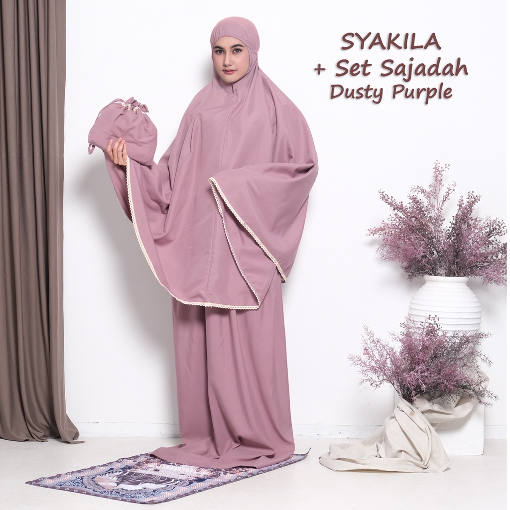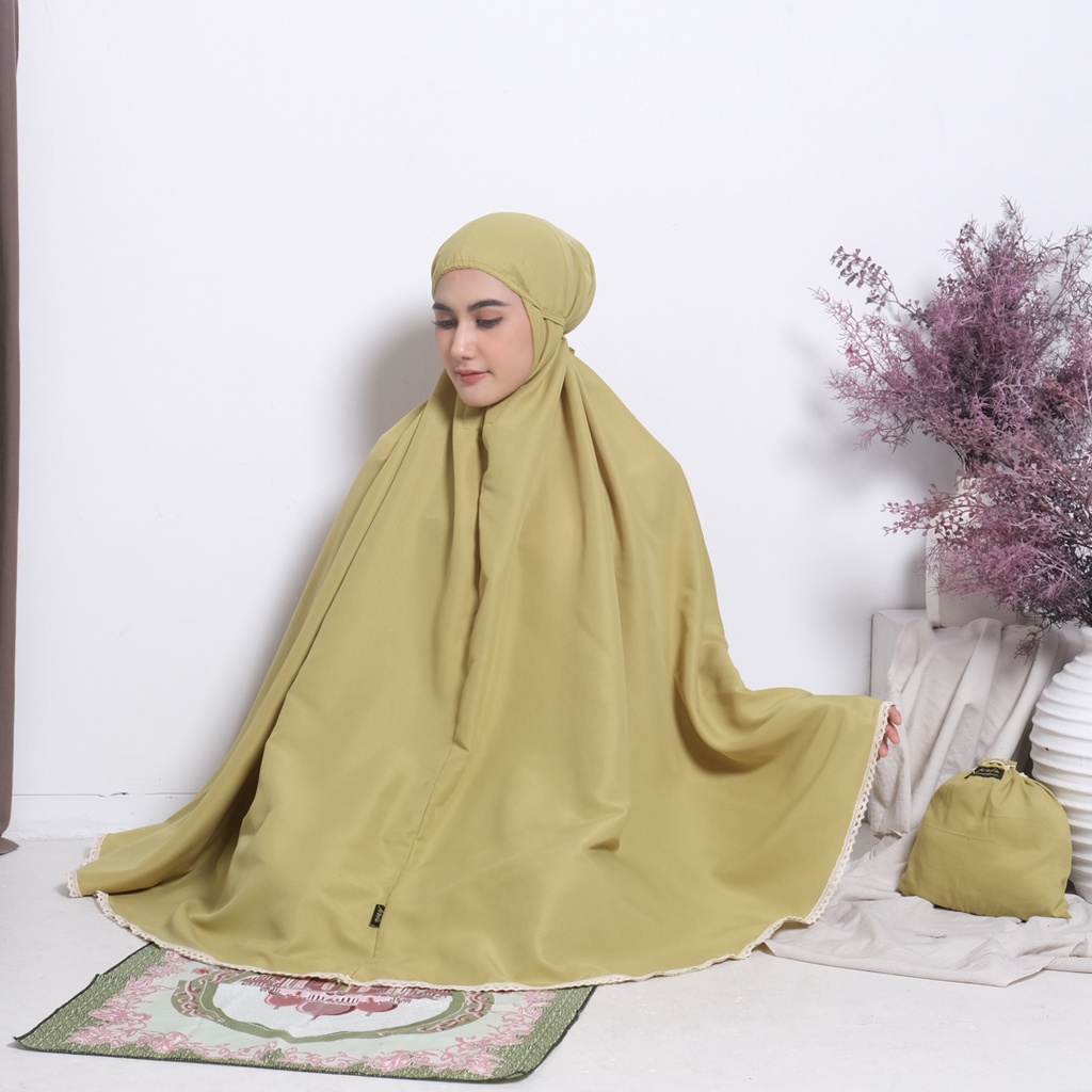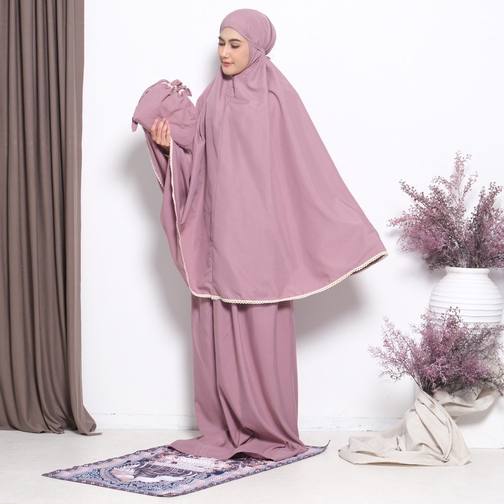 Full Set Mukena + Sajadah Syakila Dewasa Travel Series Katun Polos Renda Arbifa