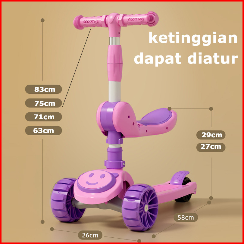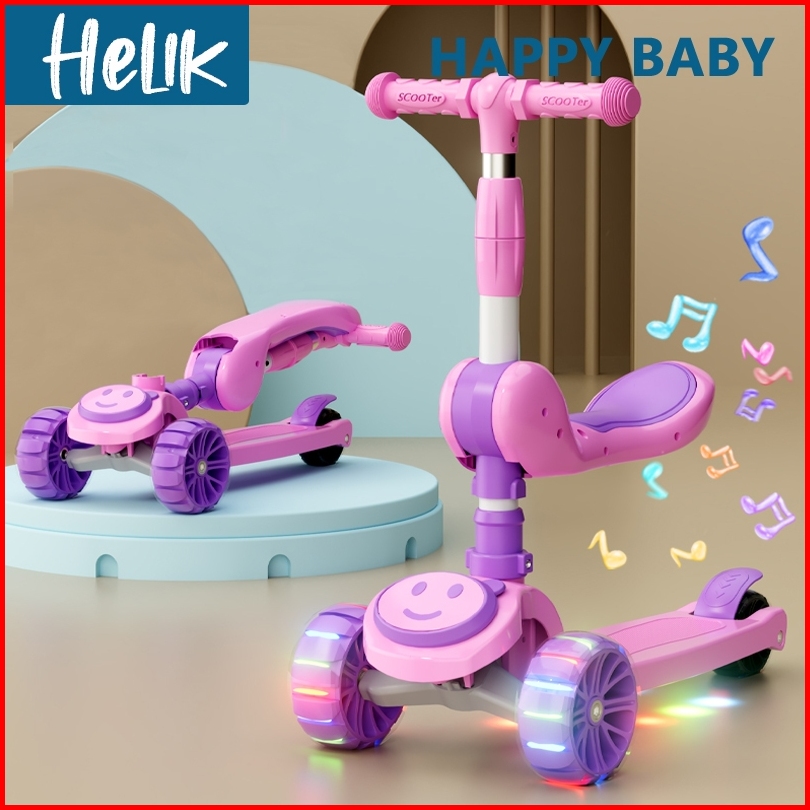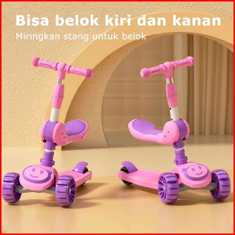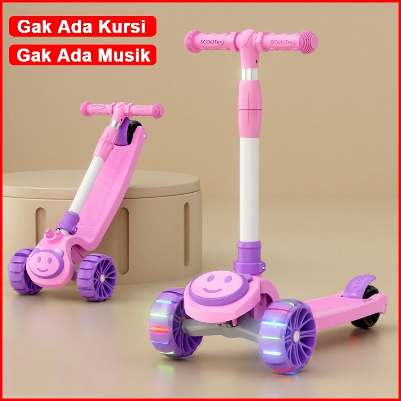 Skuter Anak Roda 3 Mainan Scooter Otoped Bisa Lipat Dengan Lampu Musik