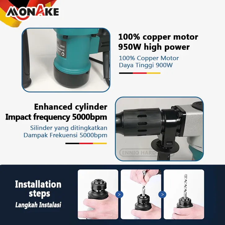 Rotary Hammer Drill Mesin Bor Beton Listrik Electric Hammer MONAKE