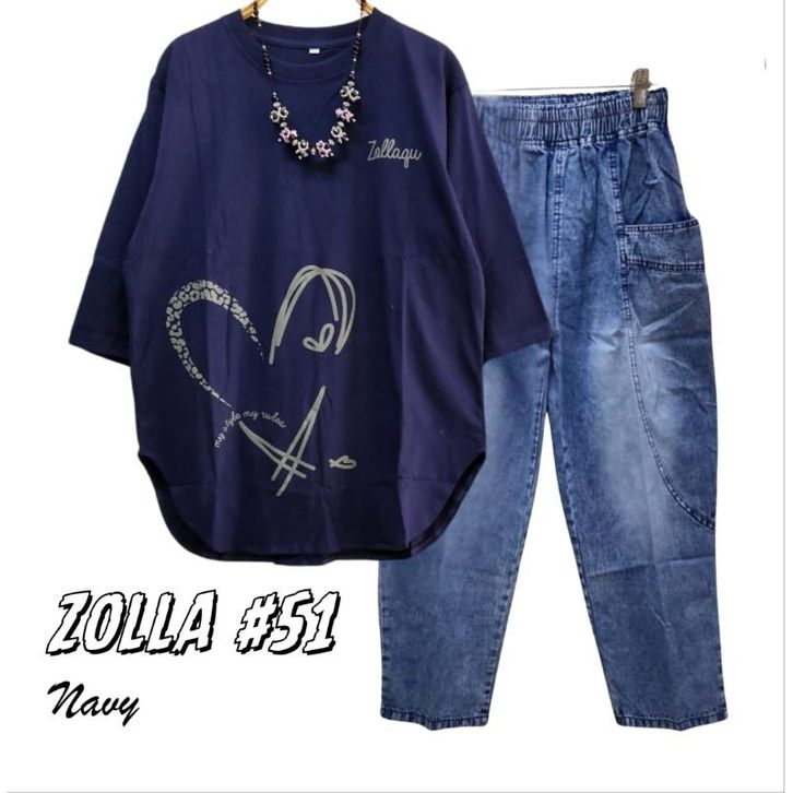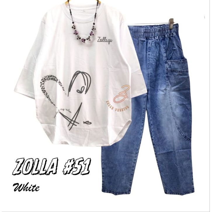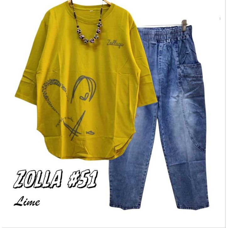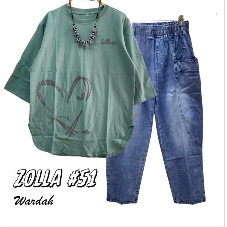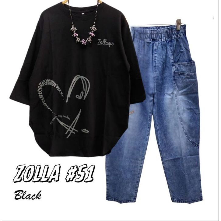 ZOLLA SET #51 Setelan Wanita Dewasa JUMBO bahan kaos Combed 24s Celana Jeans Wash HQ
