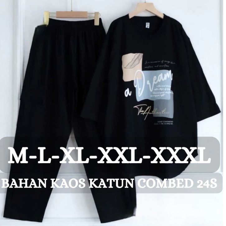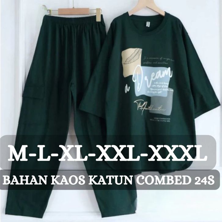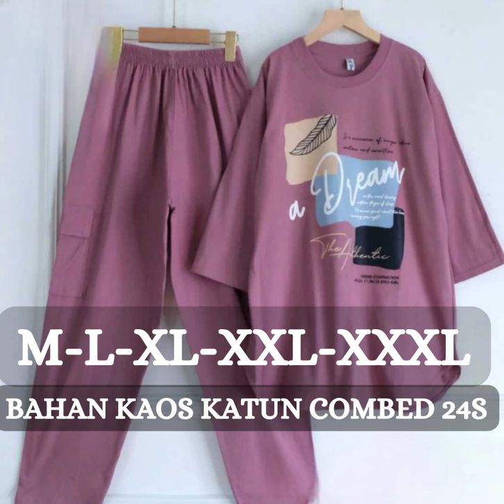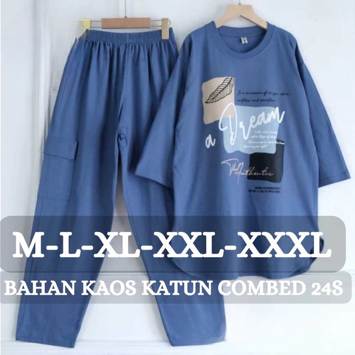 Setelan Cargo Wanita Import Alice Set BO Size M L XL XXL XXXL LD 100-130 CM Bahan Kaos Katun Combed Sablon Korean Style