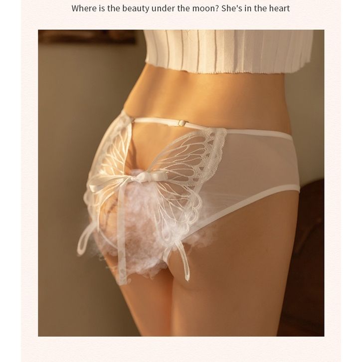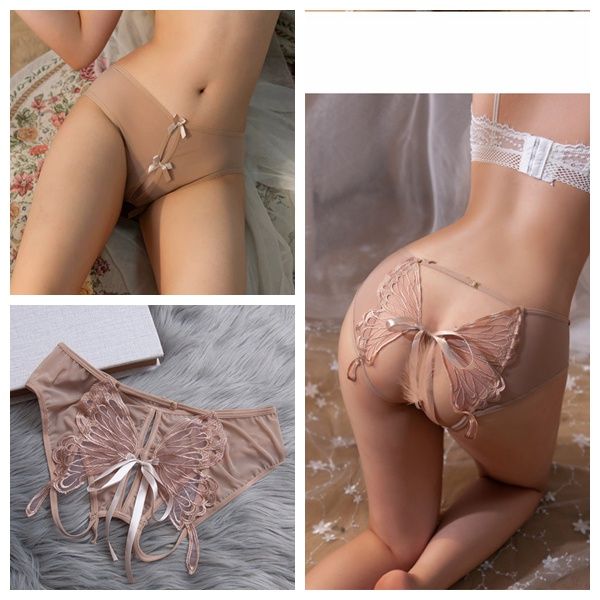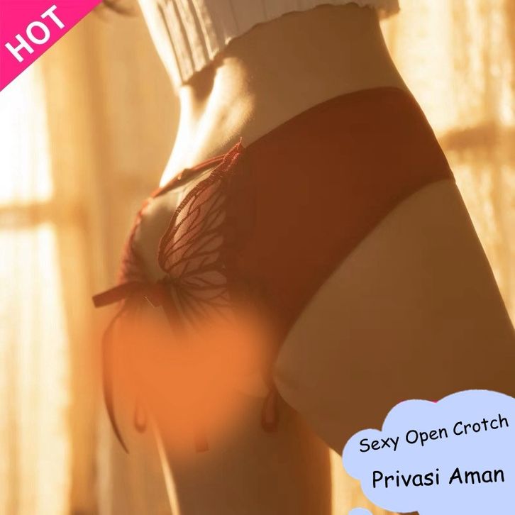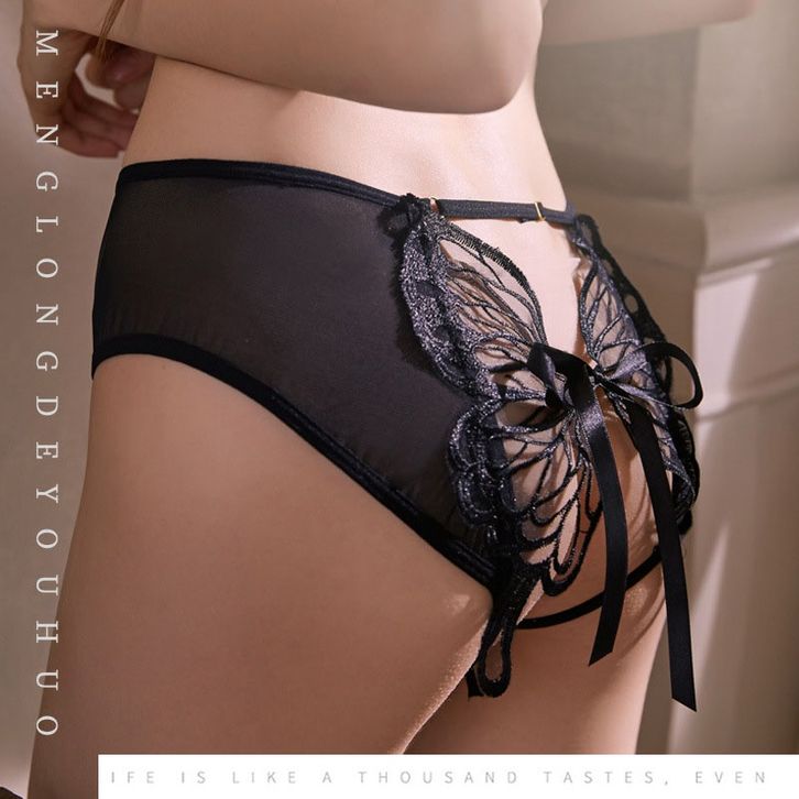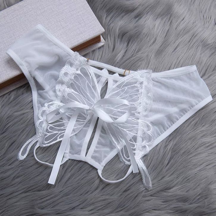 Celana Dalam Wanita Open Crotch jumbo Bordir Kupu-kupu Mesh G String Transparan Sexy Lingerie C021