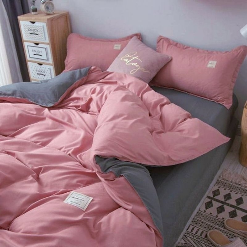 BED COVER SET AESTHETIC KOREAN STYLE SPREI POLOSAN TWO TONE | UKURAN 200X200X20 | CUSTOM QUEEN KING SIZE