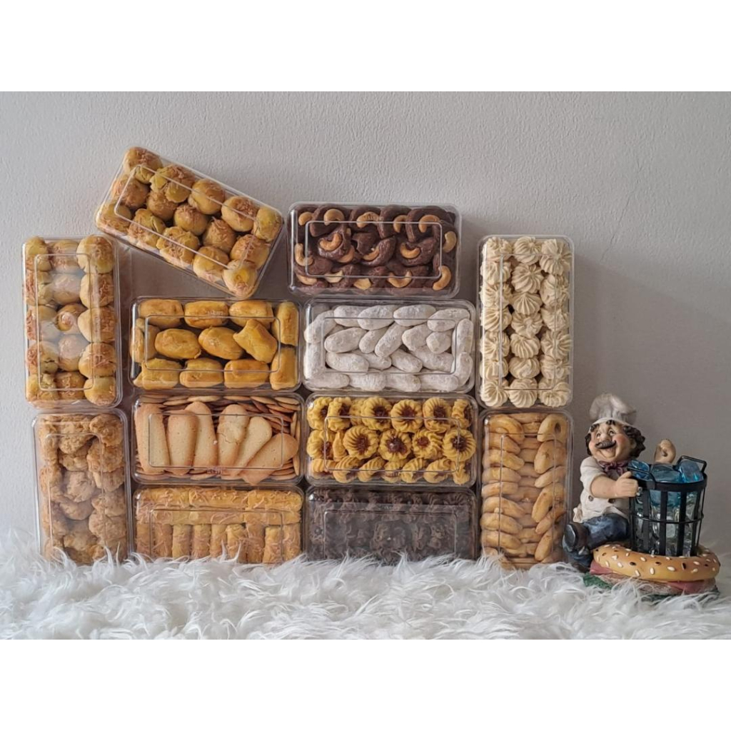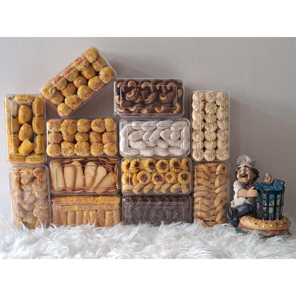 Putri salju, Semprit, Sagu keju, Nastar Lipat, Nastar keju, Nastar Bulat polos, Lidah kucing, Keju, Corn flakes, Coklat mede