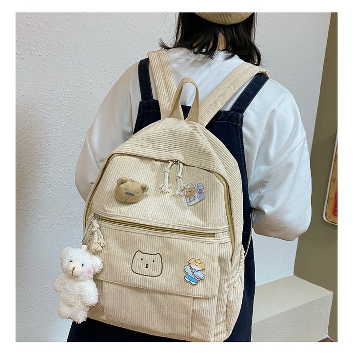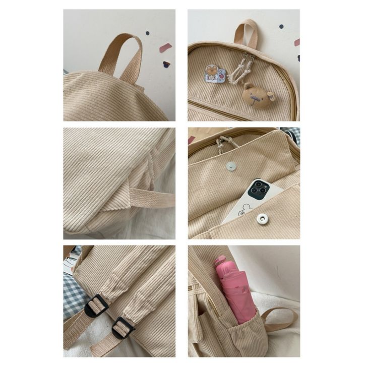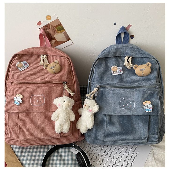 KINOKIMI - RANSEL WANITA CANTIK - RANSEL SEKOLAH - RANSEL CORDUROY - BACKPACK ANAK - TAS CEWEK
