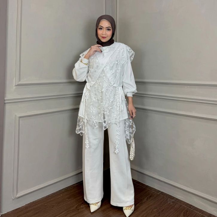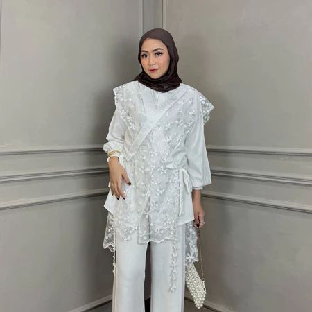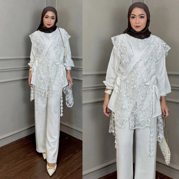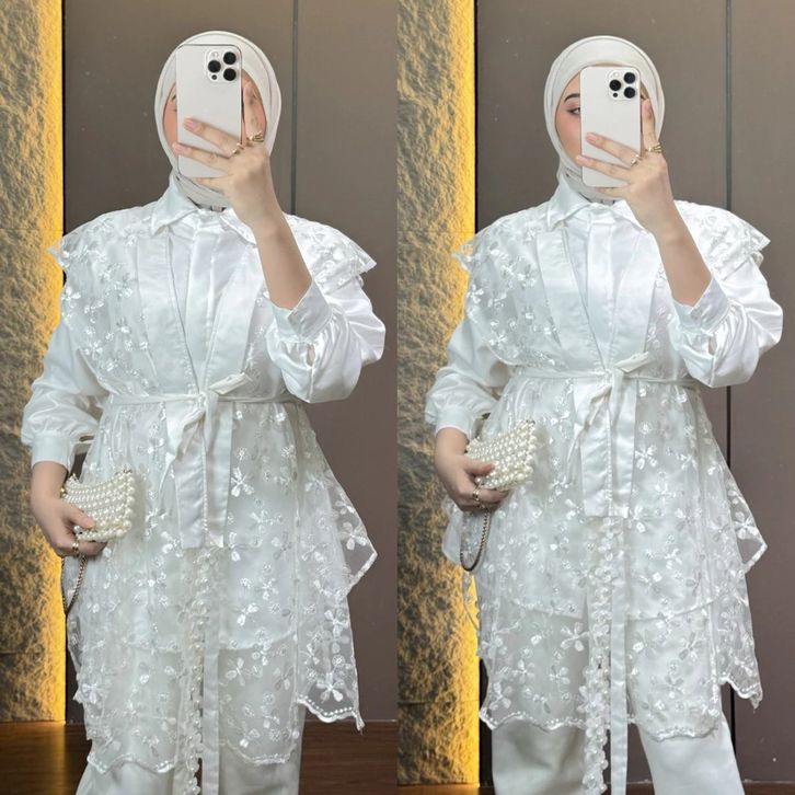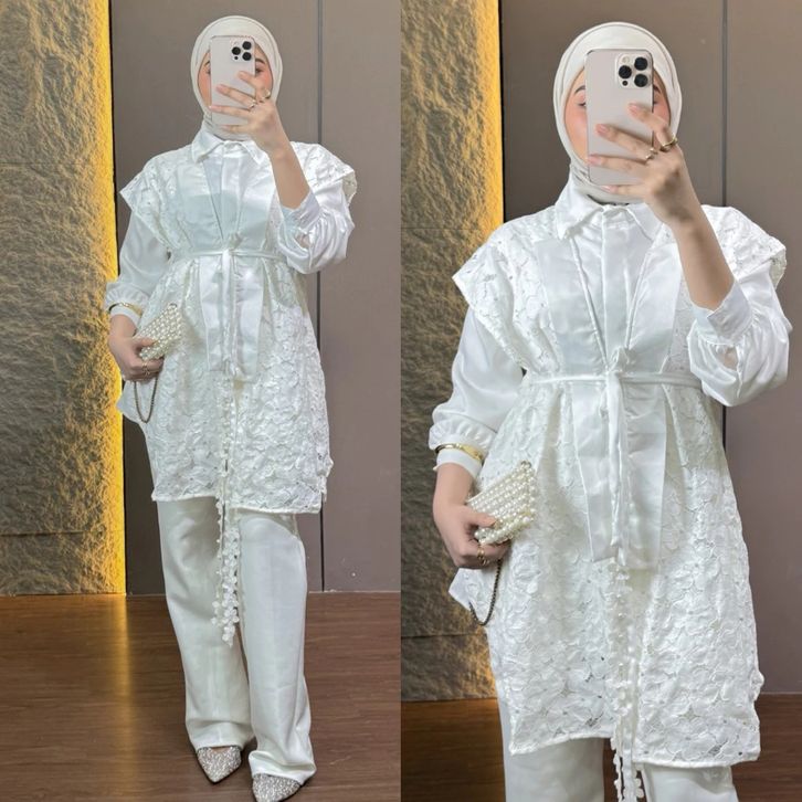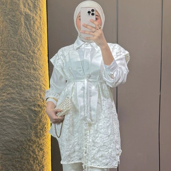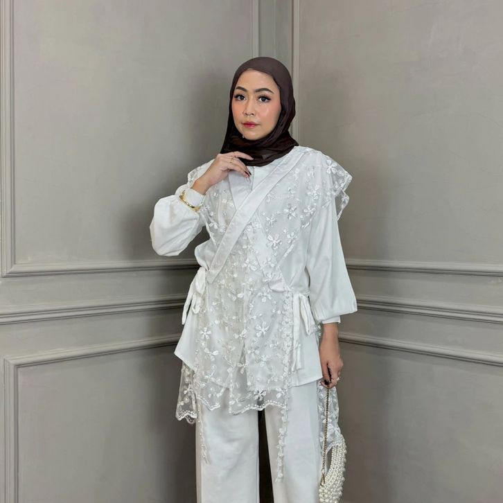 Baju Kondangan Brukat Modern Ayumi Outer Kimono Brukat Exclusive Setelan Kondangan Wanita Korean Style Modern Terbaru