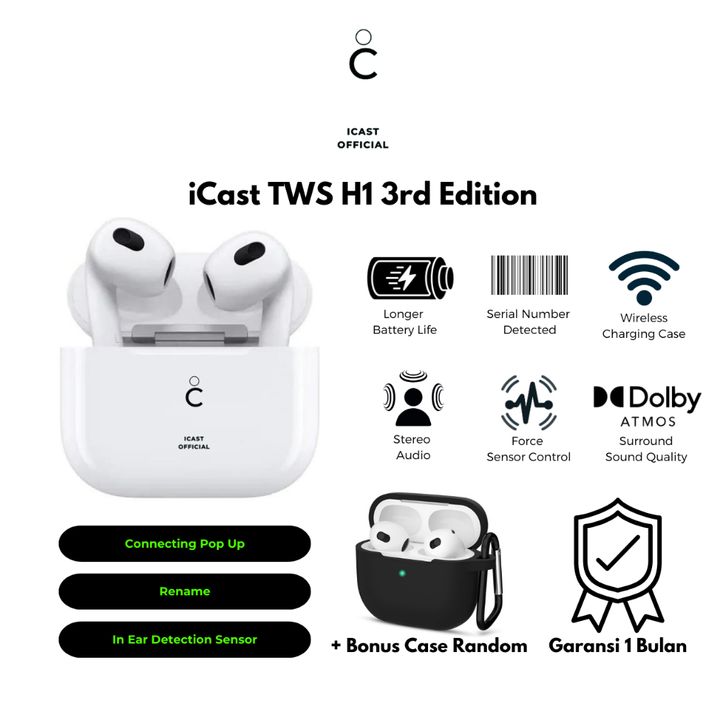 【DP 0%】iCast TWS 3rd Edition Wireless Charging Case TWS Bluetooth [Free Silicone Case]